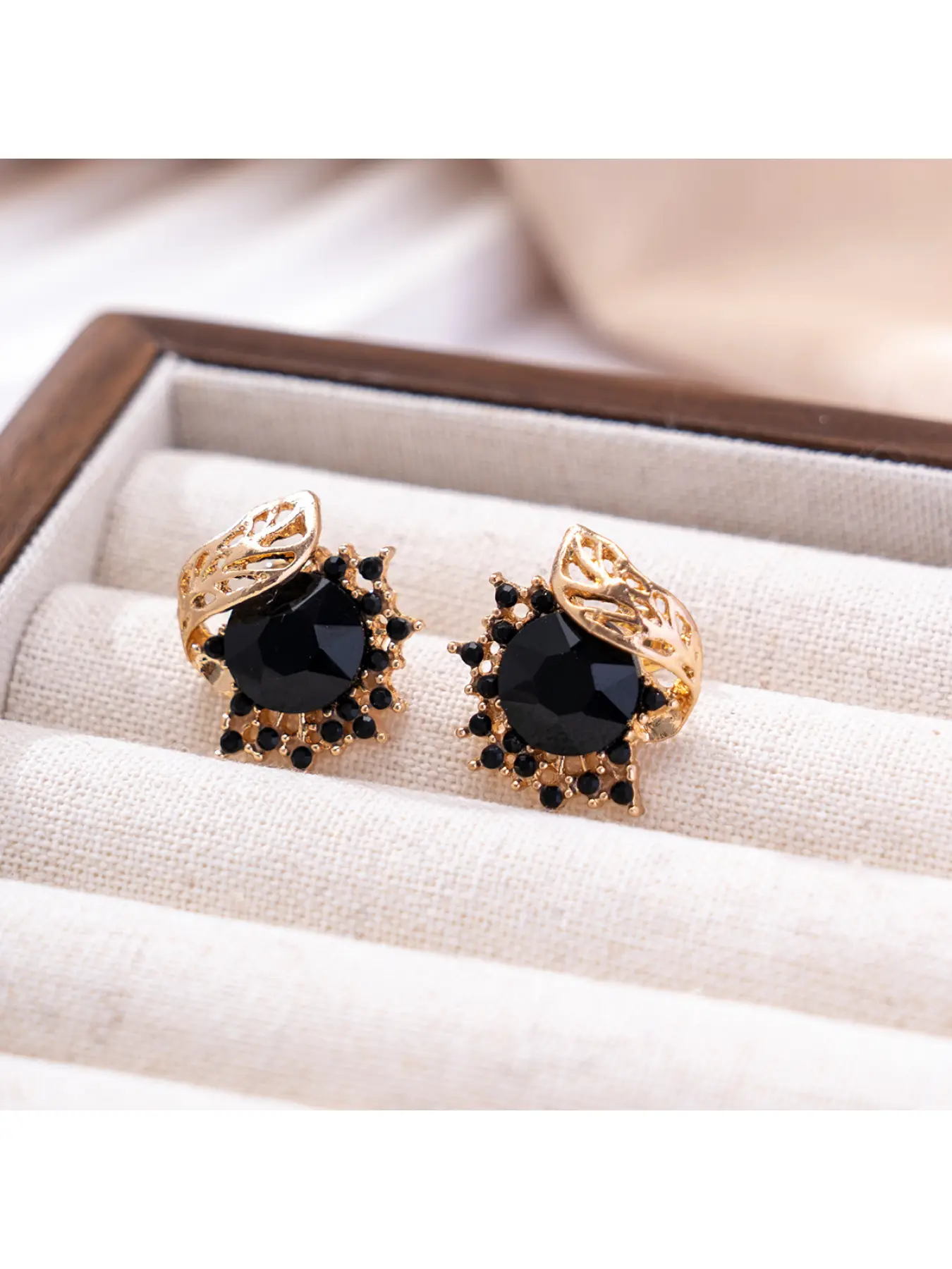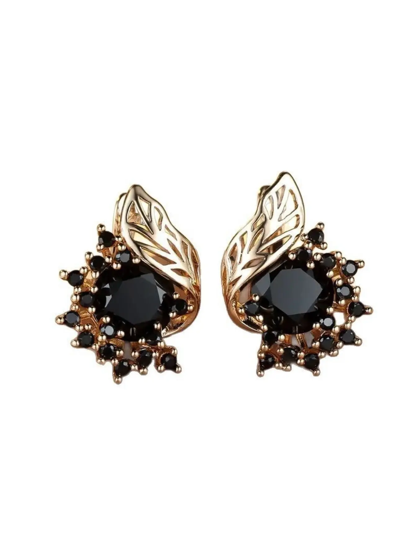 Black Elegant Earrings - Elegant and Luxurious High-End Black Diamond Flower Earring for Ladies