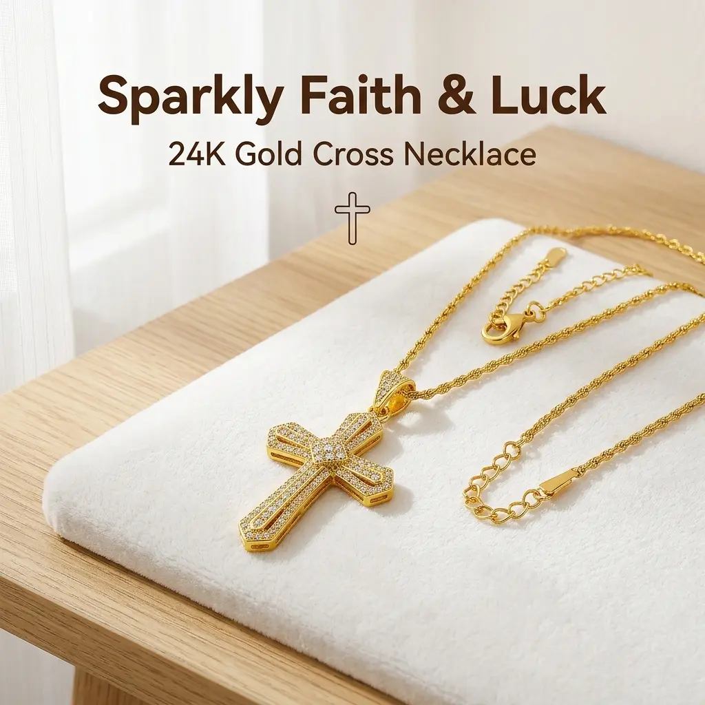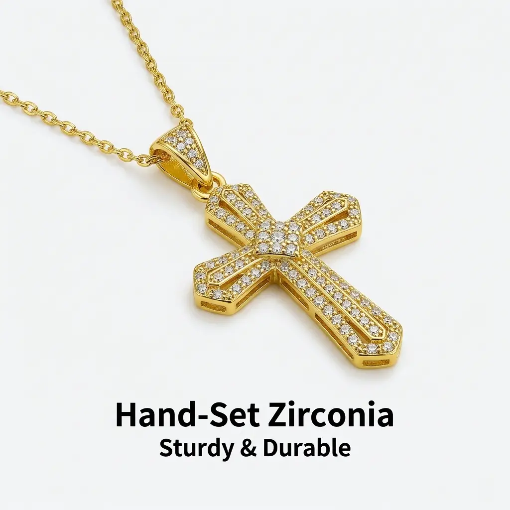 1. 14k gold-plated cross pendant necklace, inlaid with lab-grown diamonds, cool and luxurious for daily wear.