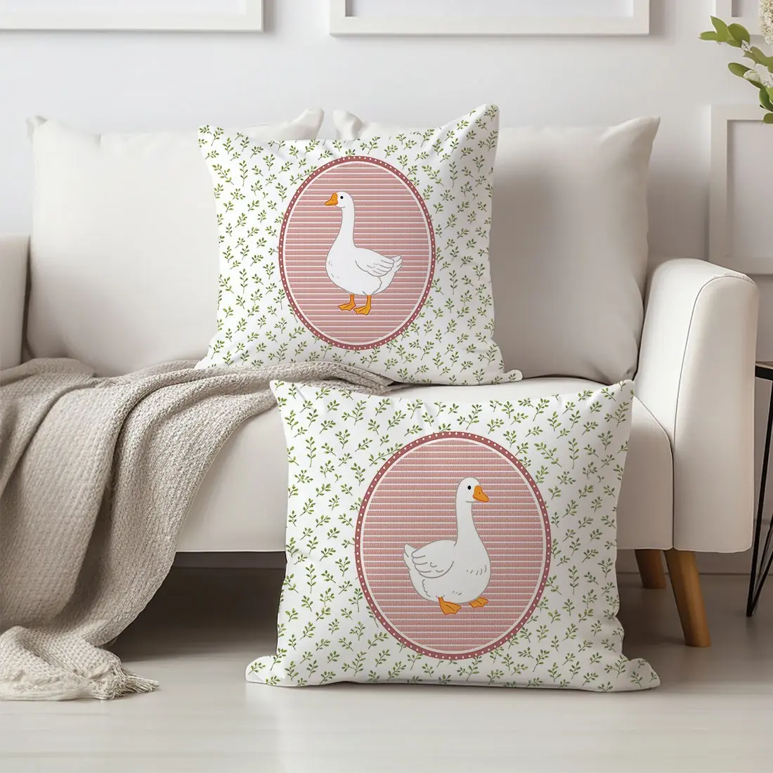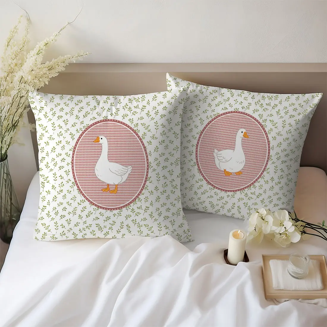 2-Pack Rural Style Duck and Plant Pattern Pillow Covers, Single-Sided Print, Simple Home Decor for Living Room Bedroom, No Insert Included