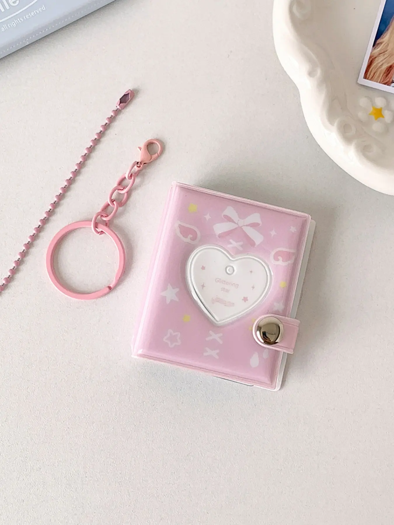 Mini 2 Inch Photo Album Keychain Holder, Holds 32 Photos, Heart Design, Perfect for Friends and Girls, Ideal Gift for Besties