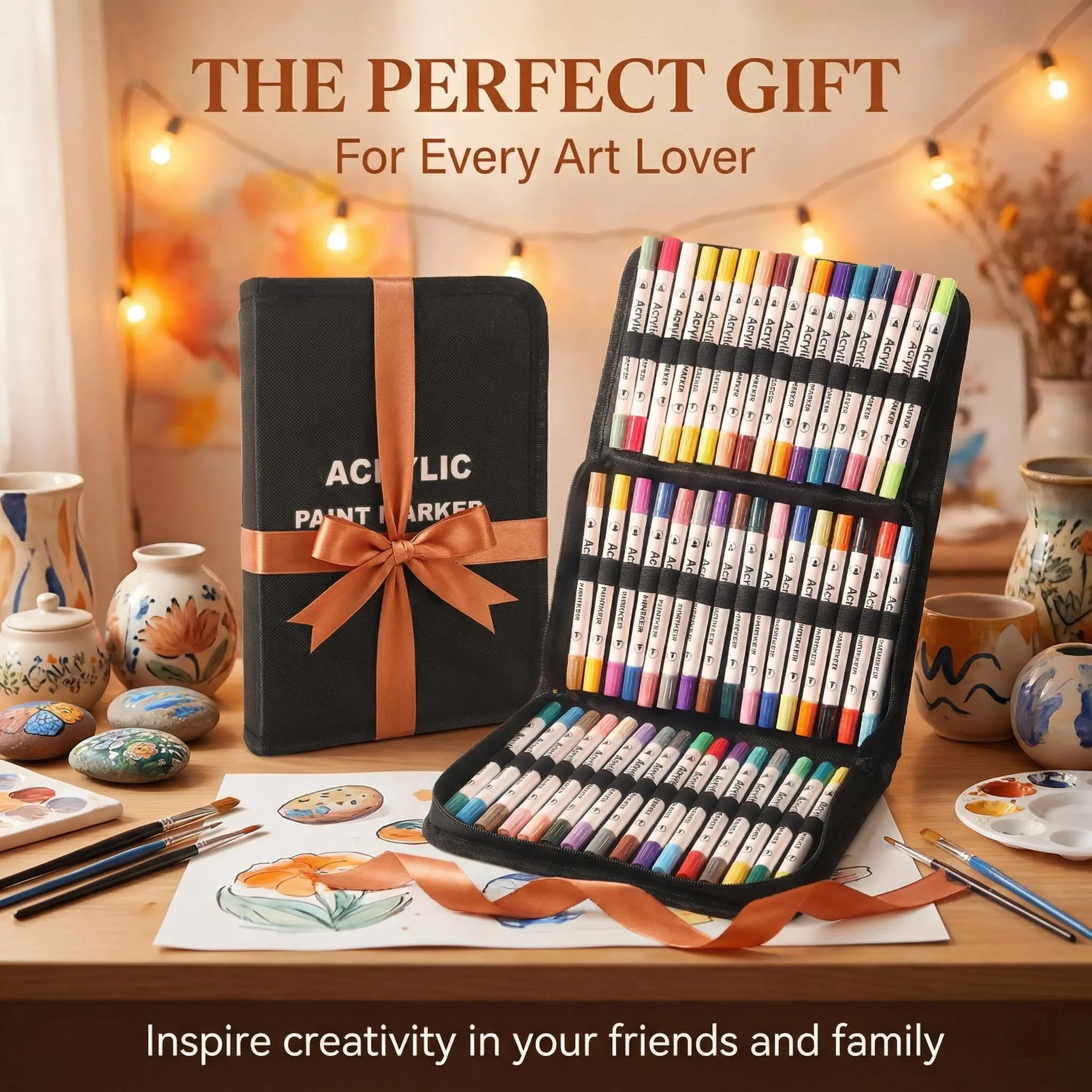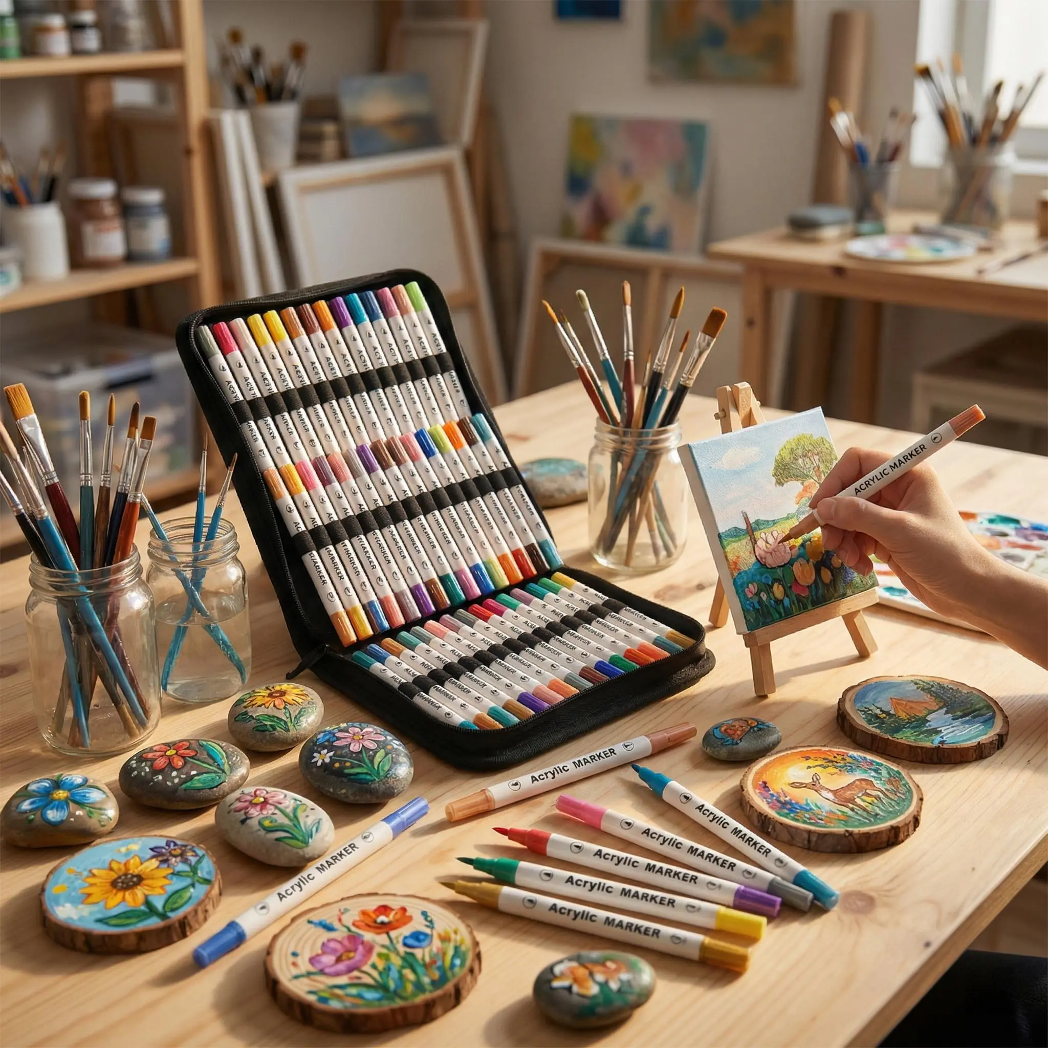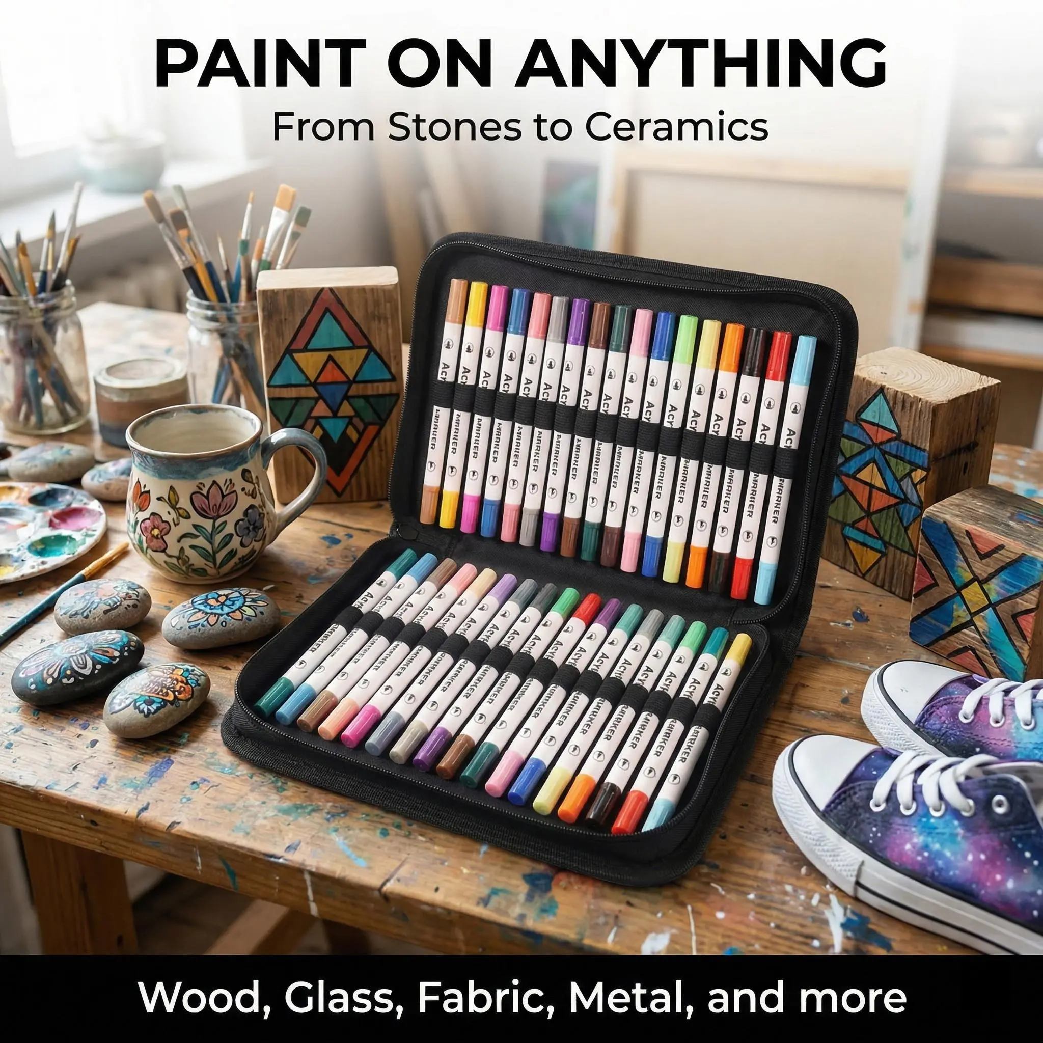 48 Acrylic Paint Markers, Large Capacity Acrylic Markers with Long-Lasting Tip, Professional Art Supplies for Rock Painting, Ceramic, Glass, Wood, Canvas, Fabric, Crafts