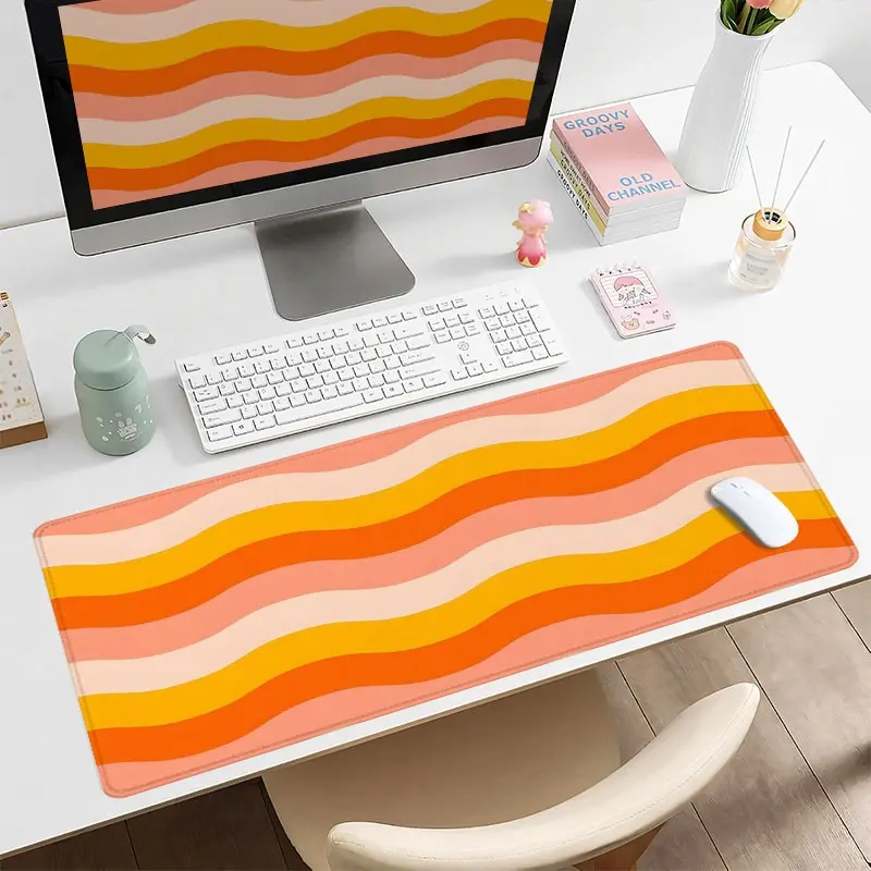 Retro Wave Desk Pad Gaming Mousepad XXL Mouse Pad For Laptop Desk Mouse Pad Extra Large With Non-Slip Rubber Base Stitched Edges Surface For PC Gamers Office Workers & Home Use Perfect Gift For Birthday Christmas Holiday Season