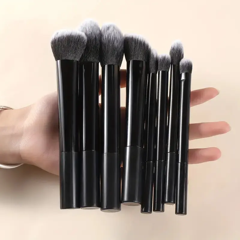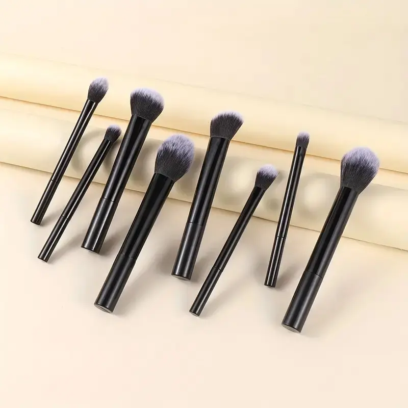 8-Piece Portable Makeup Brush Set, Includes Foundation, Blush, Concealer, Eyeshadow & Highlight Brushes, Ideal for Light Skin Tone