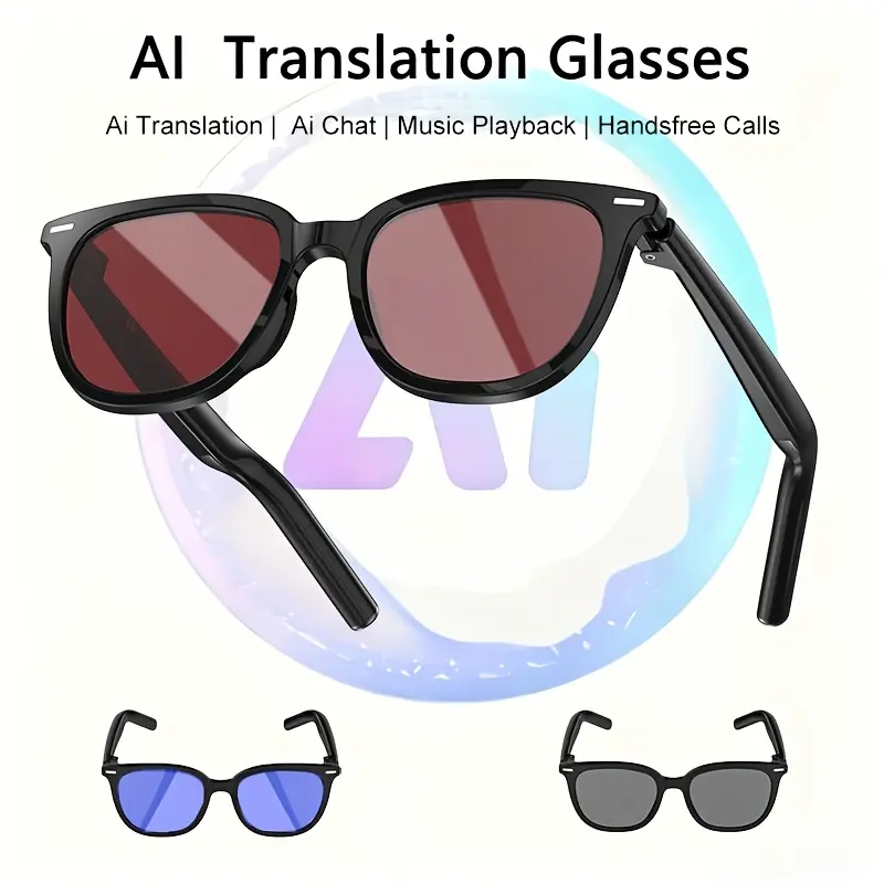 AI Smart Bluetooth Glasses for Men and Women, Gradient Tint,Real Time Translation, Voice Assistant, Hands-Free Calls, Indoor Protection for Iphone Android Music,Open-Ear Audio for Travel, Work Vlog