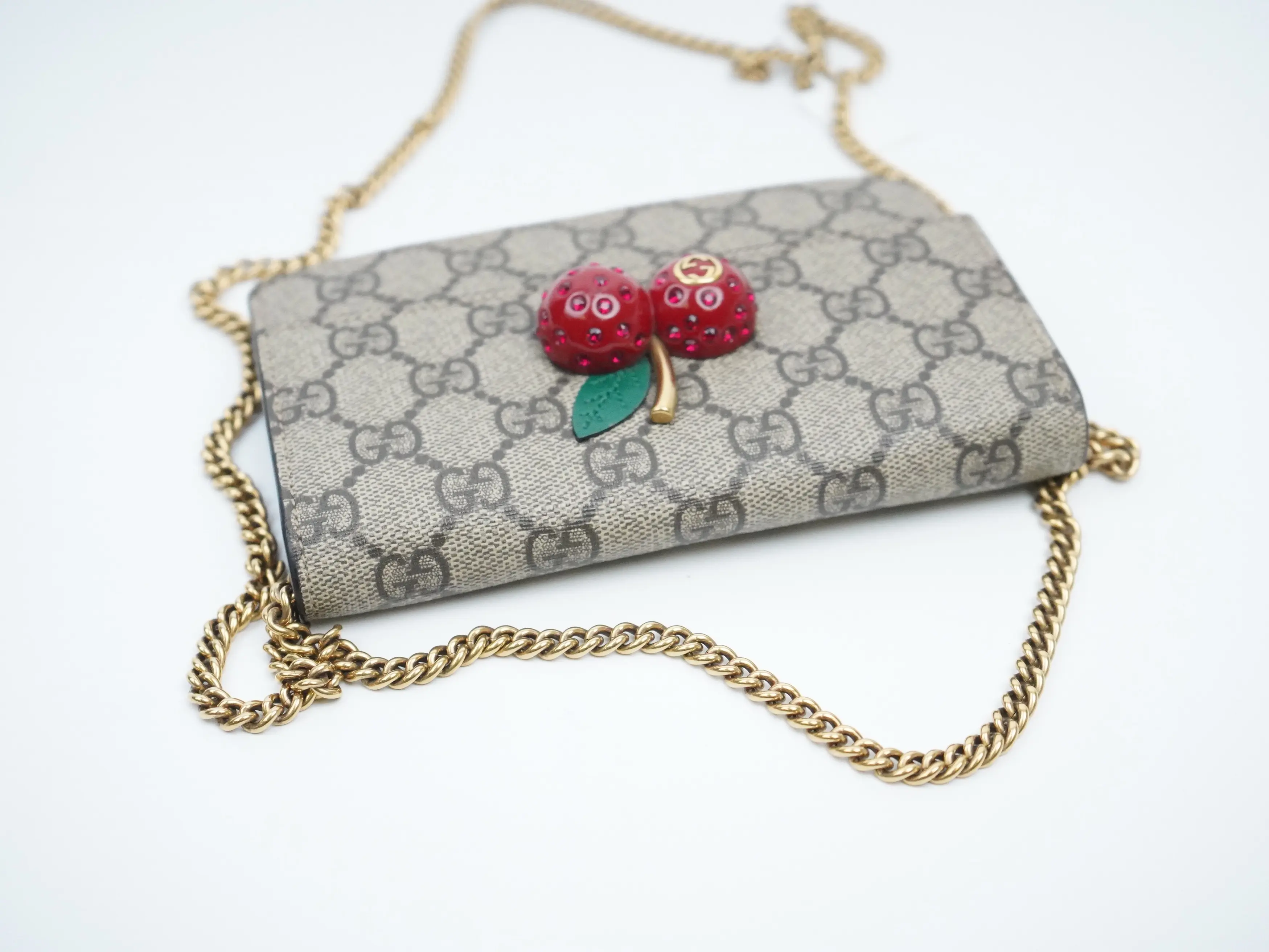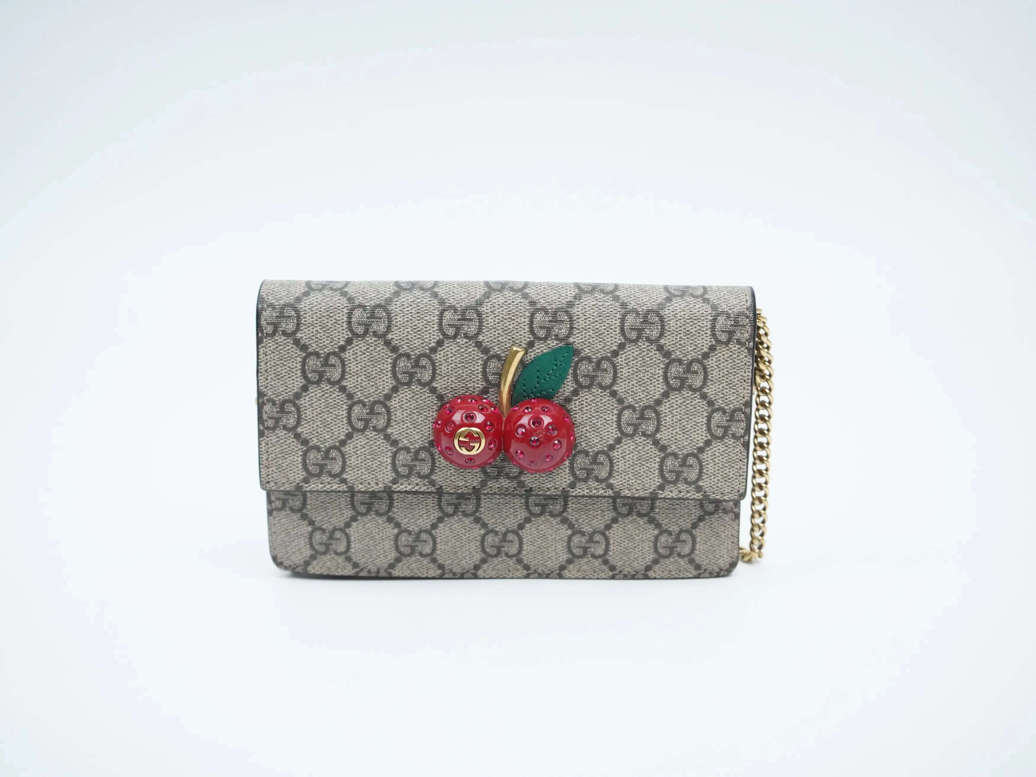 ·This is an authentic GUCCI GG Supreme Monogram Mini Cherry Chain Bag.