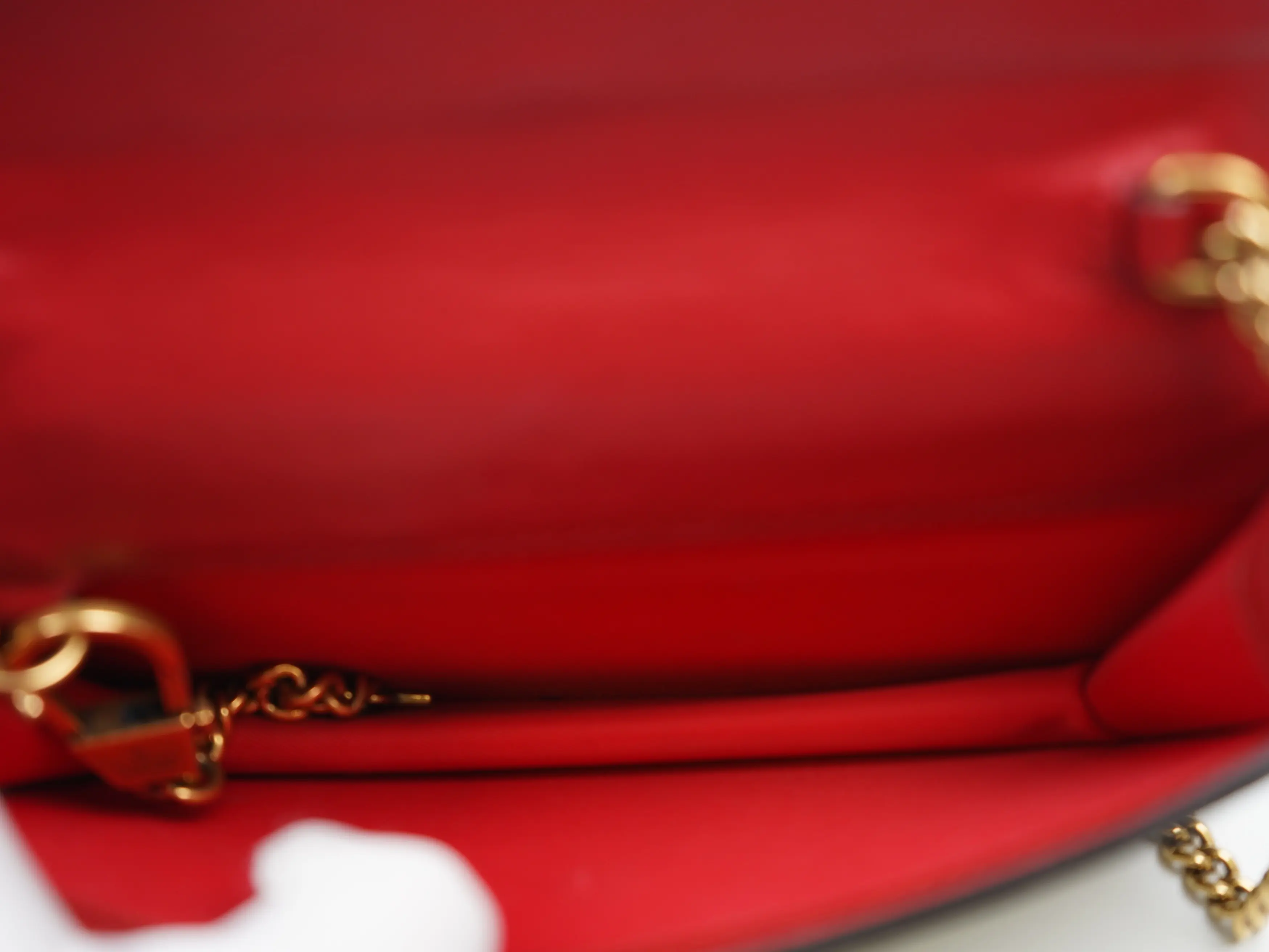 ·This bag features an aged gold shoulder chain a flap top with snap closure.