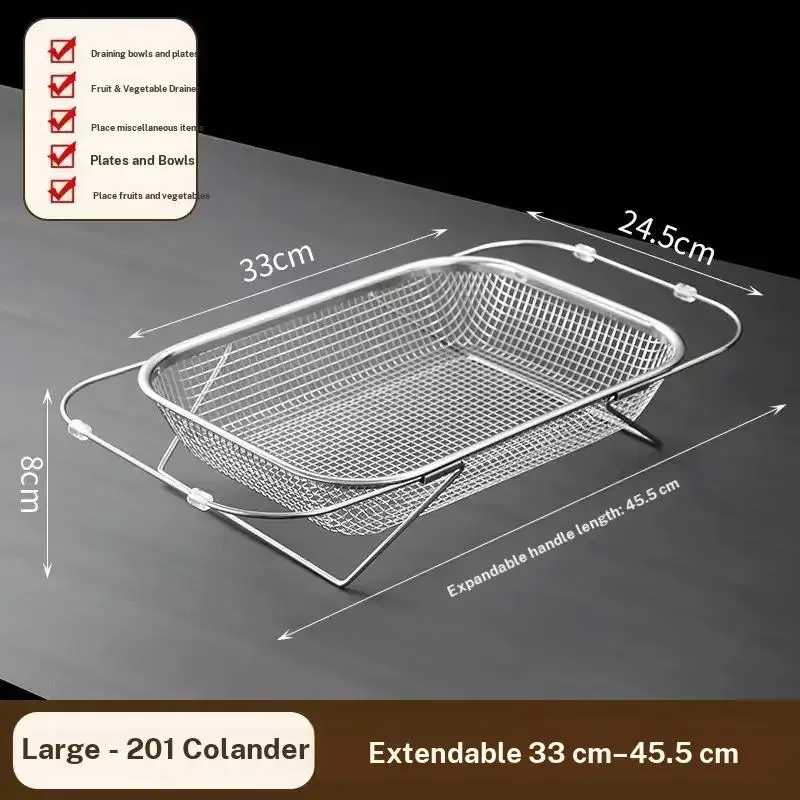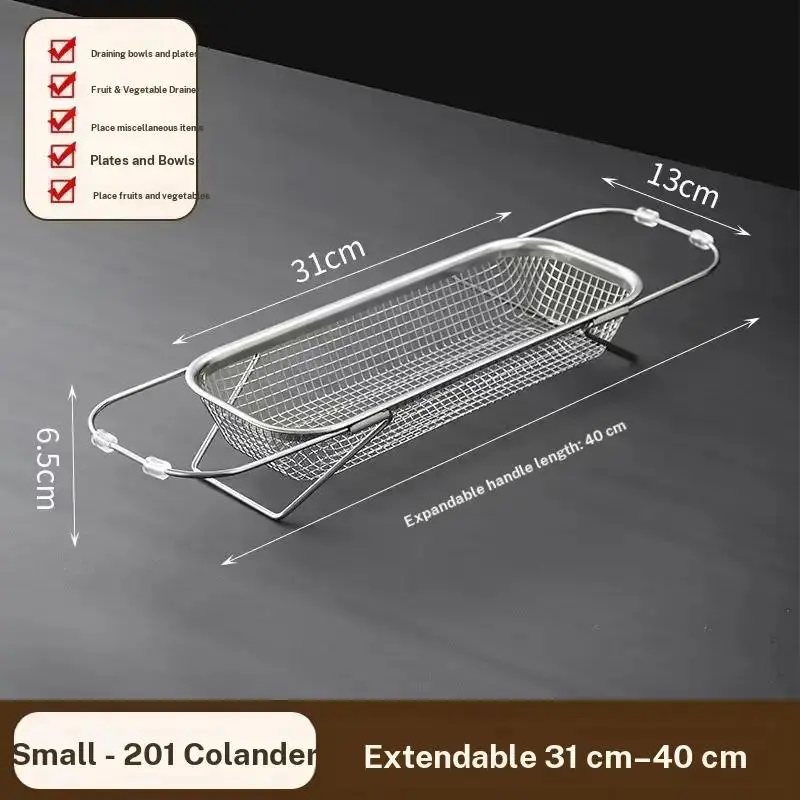 Extendable Stainless Steel Sink Drain Basket, Vegetable Washing Basin Rack, Kitchen Sink Drain Rack, Dishwashing Sink Bowl Rack