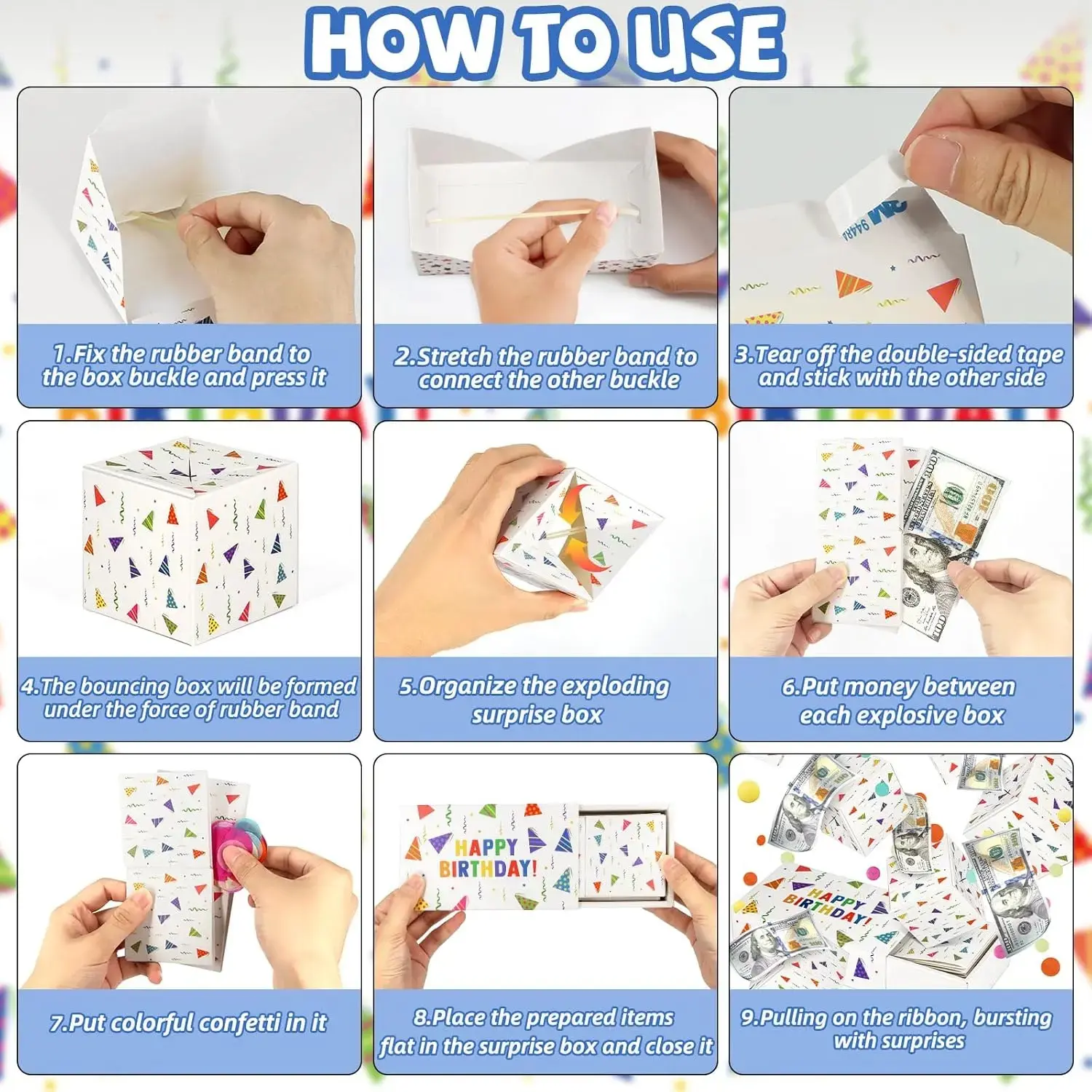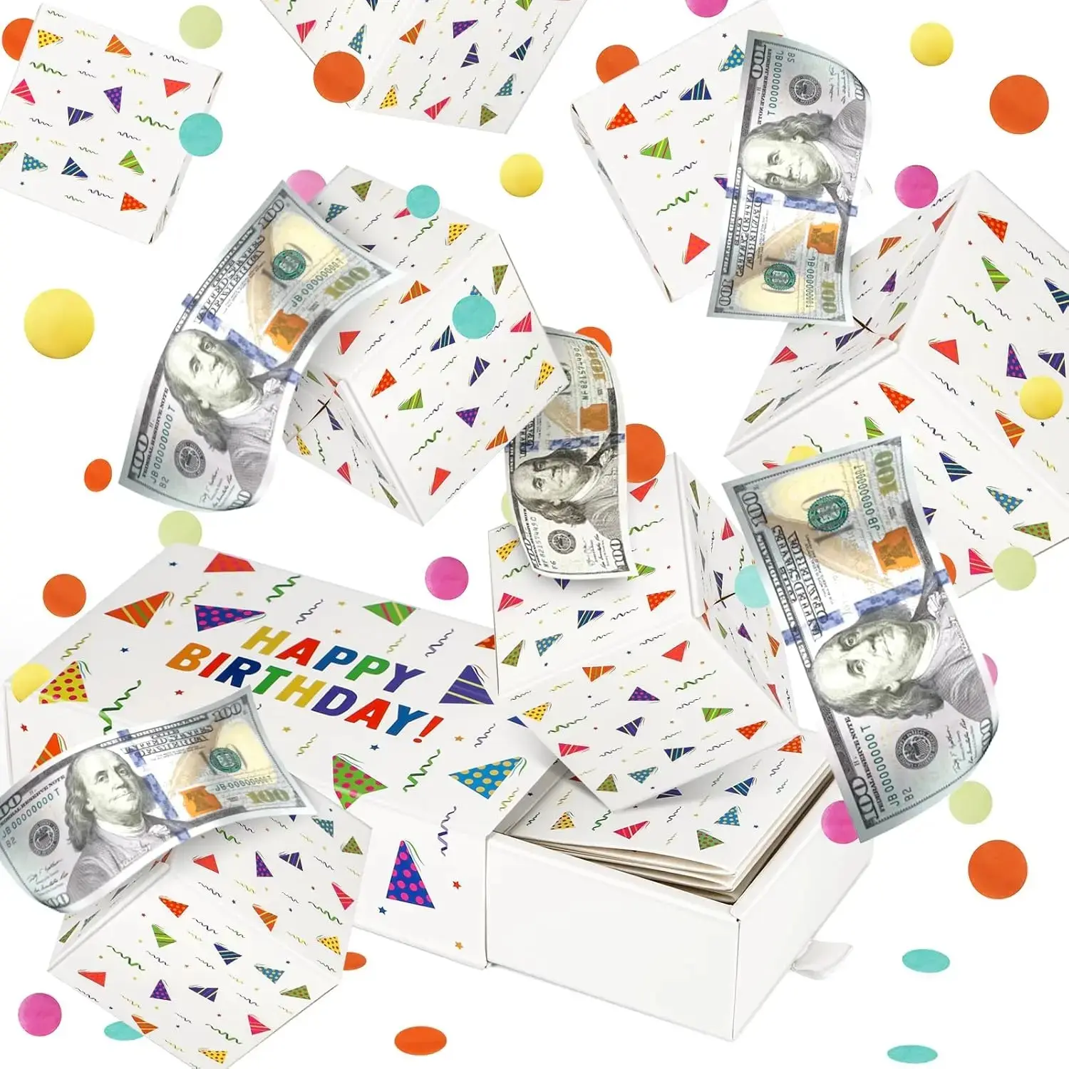 Happy Birthday Surprise Gift Box Explosion for Money - DIY Pop Out Folding Bounce Explosion Gift Box with Confetti - Birthday Money Bank - Cash Gift Idea for Women Men Kids