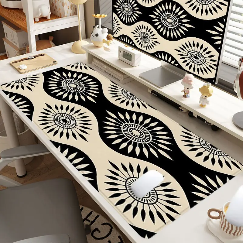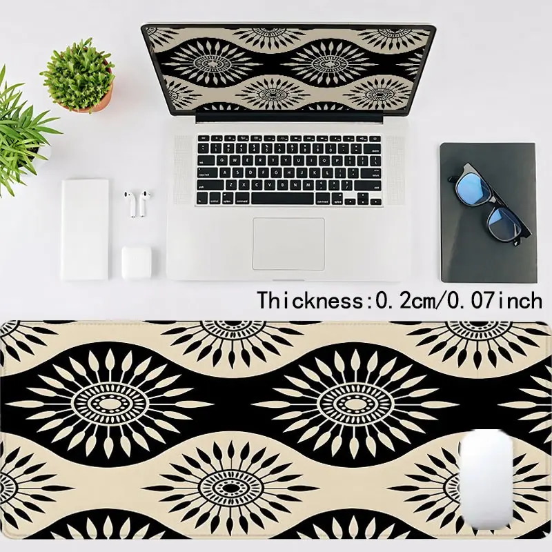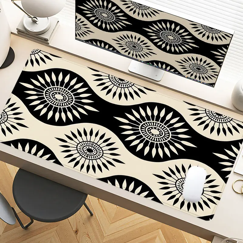 Black White Geometric Sunburst Desk Pad Gaming Mousepad XXL Mouse Pad For Laptop Desk Mouse Pad Extra Large With Non-Slip Rubber Base Stitched Edges Surface For PC Gamers Office Workers & Home Use Perfect Gift For Holidays And Special Occasions