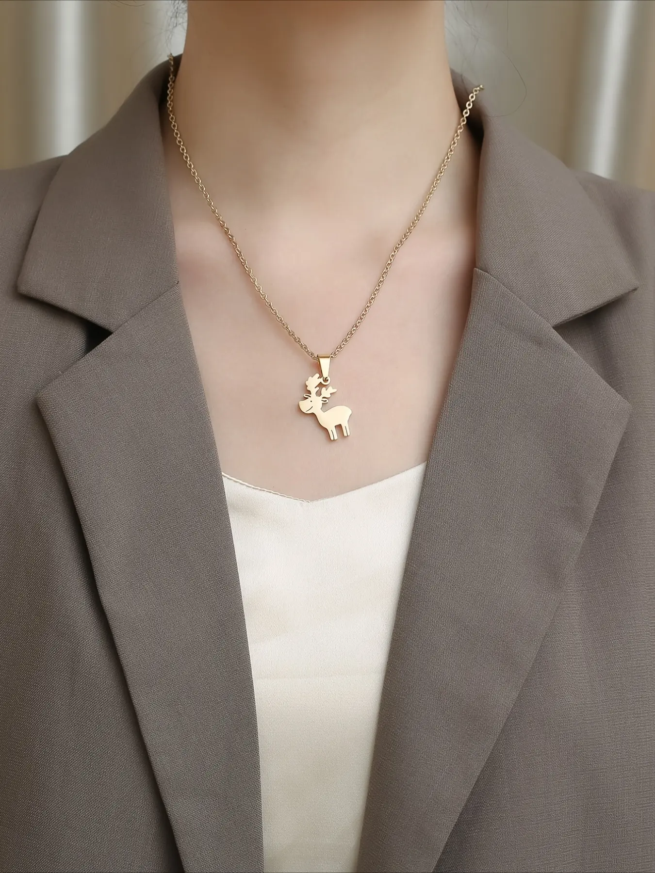 Christmas Elk Pendant Necklace, Stainless Steel Non Fading, Christmas Accessories, Christmas Gifts