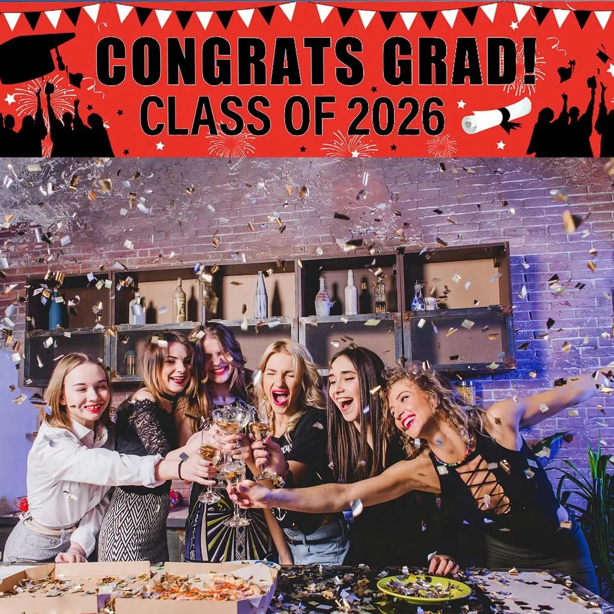 Large Celebration Graduation Banner, Red and Black, Class of 2026, Banner Background, 2026 Graduation, Yard Sign, Graduation Party Supplies and Decorations, Graduation Decorations, 2026