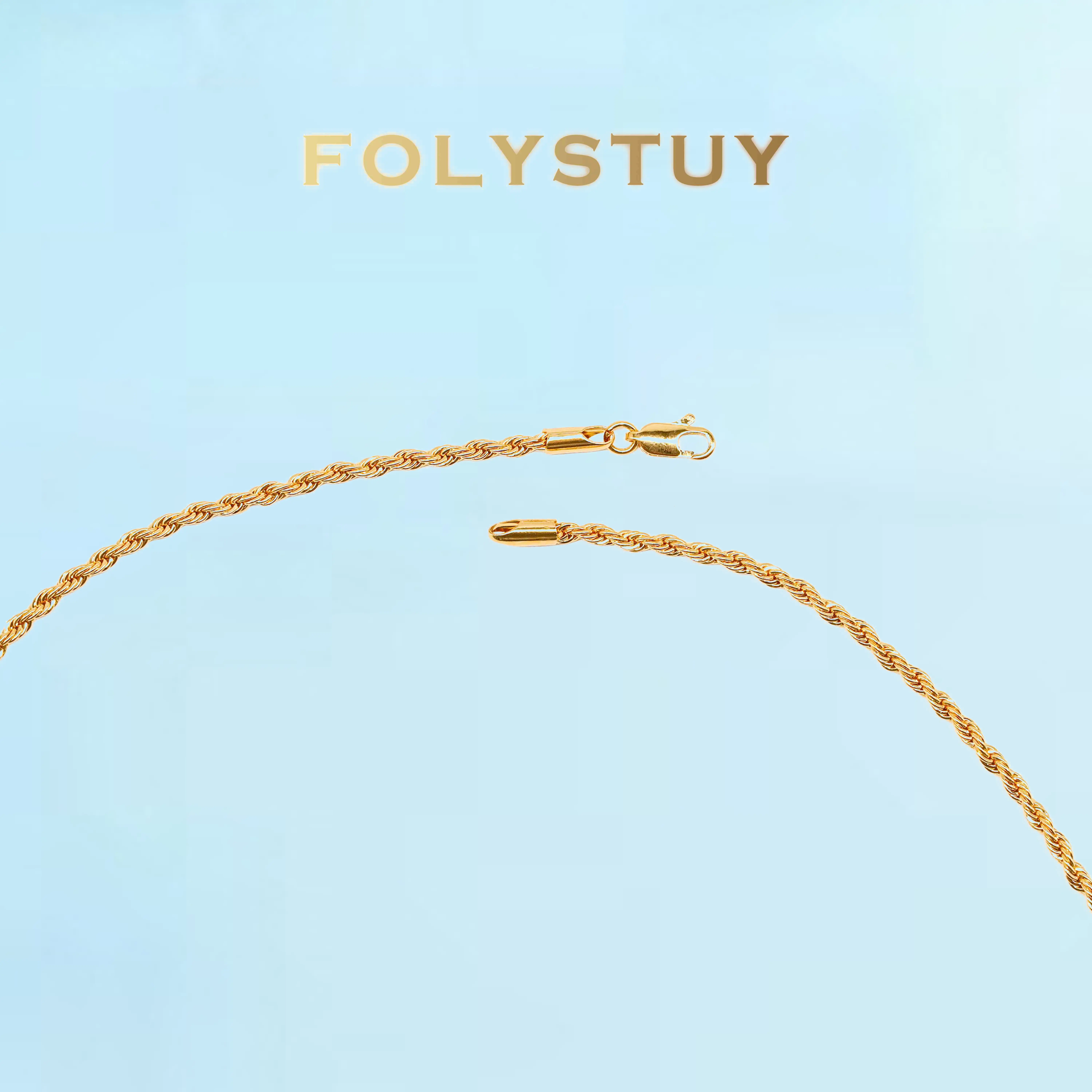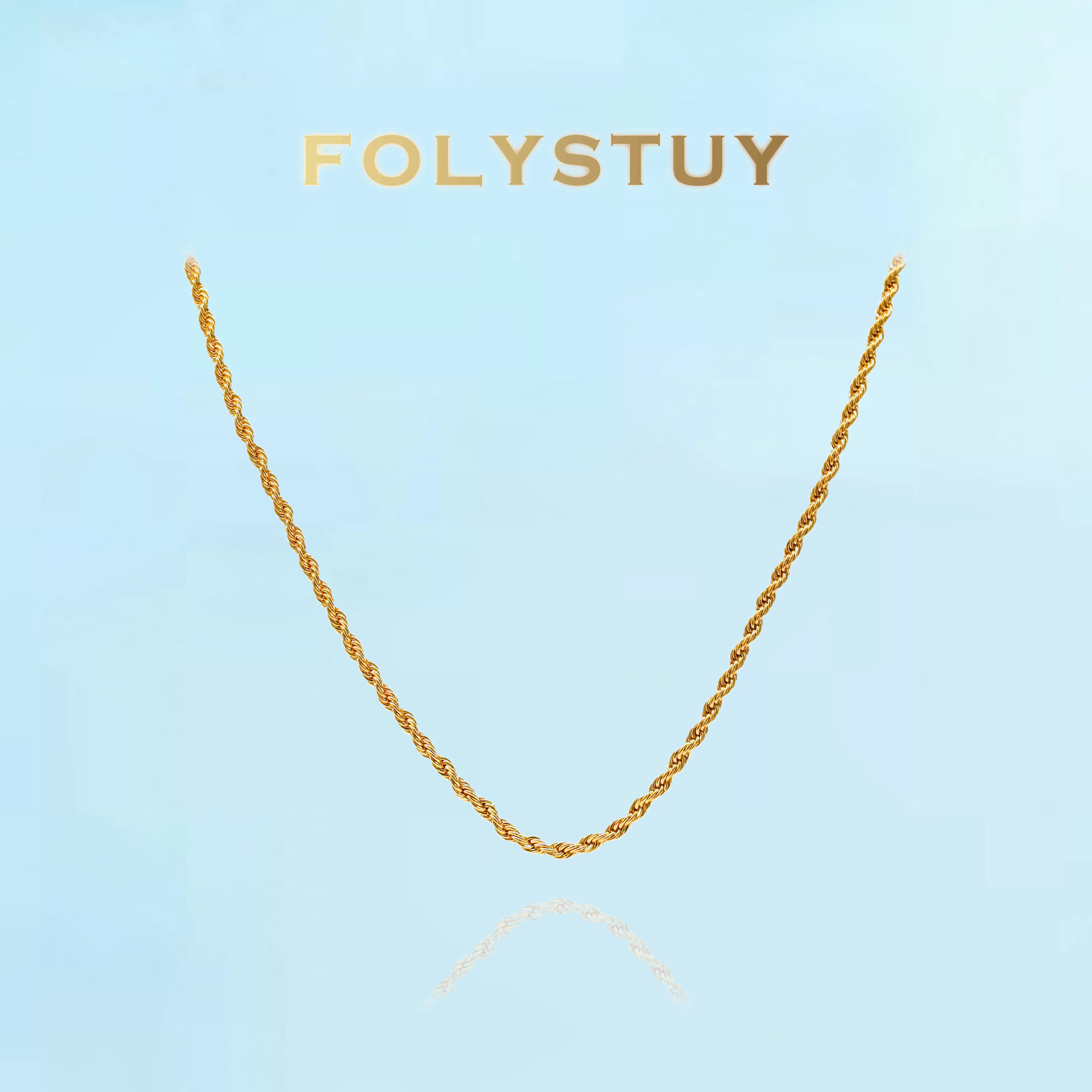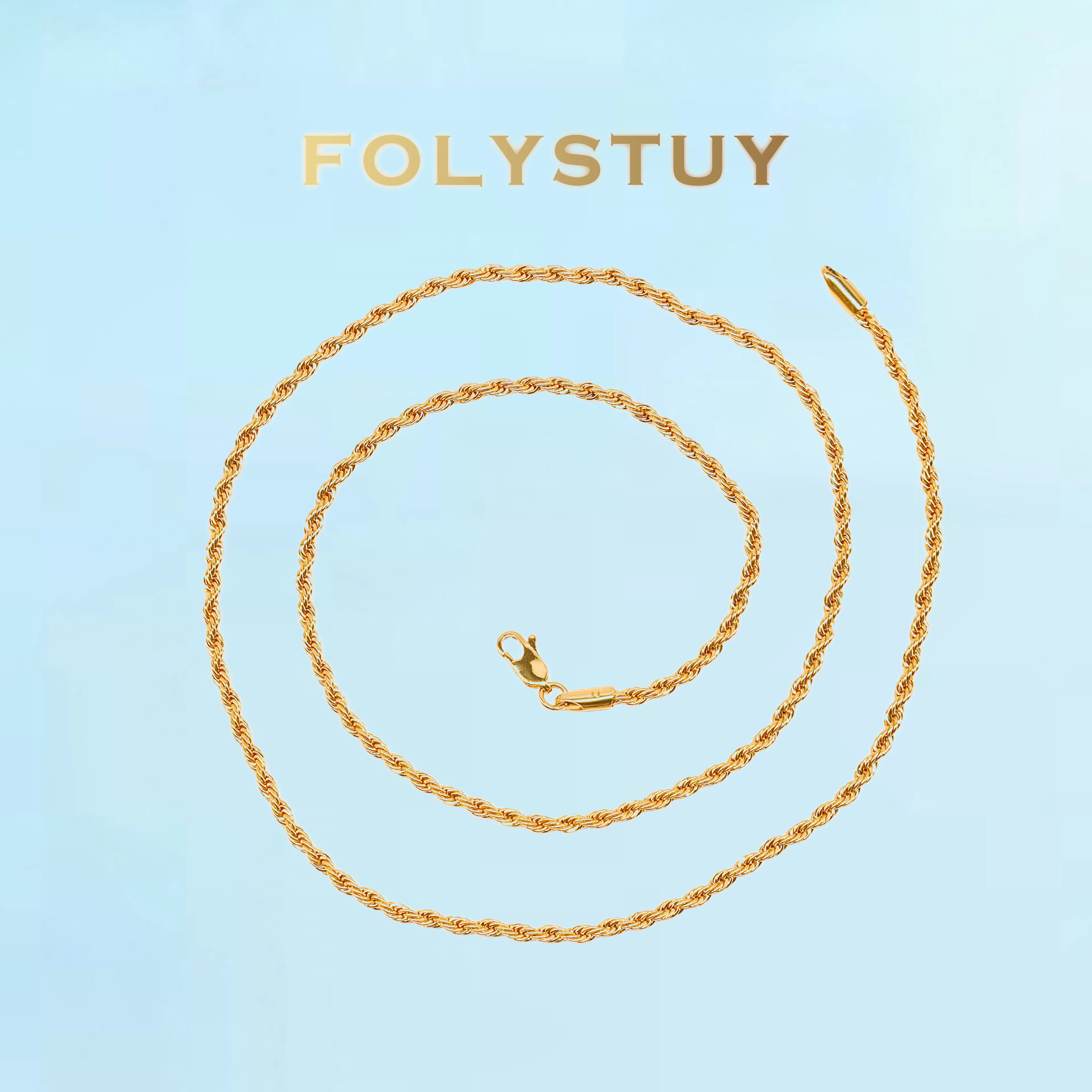 [FOLYSTUY (Y109)]Long Twisted Rope Link Necklace, 0.12" Width 27.5" Length Everyday Wear Accessory