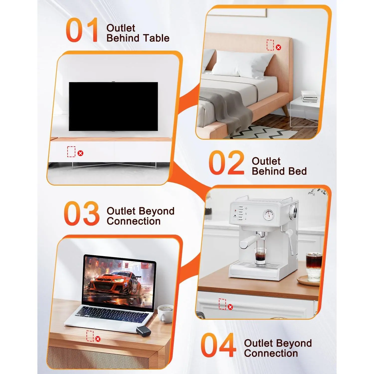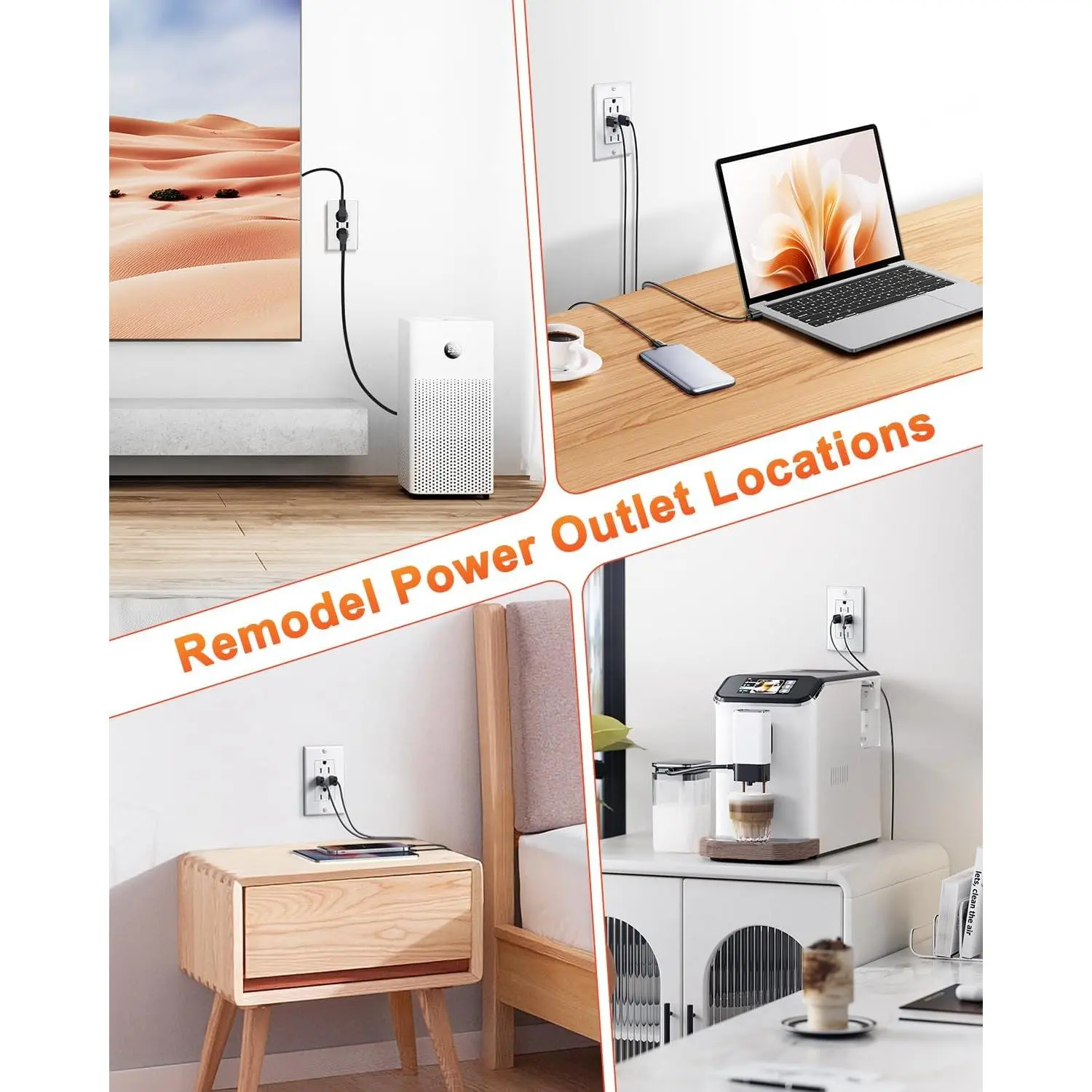 [Remodel & Relocate Your Plate]: Here comes a newly designed in Wall Outlet Relocation Kit, it is designed for in wall outlet plate remodel & relocation with which you can extend an existing original outlet's power to a new outlet in your preferred location in your living room, bedroom, kitchen for closer or easier power cable connection.