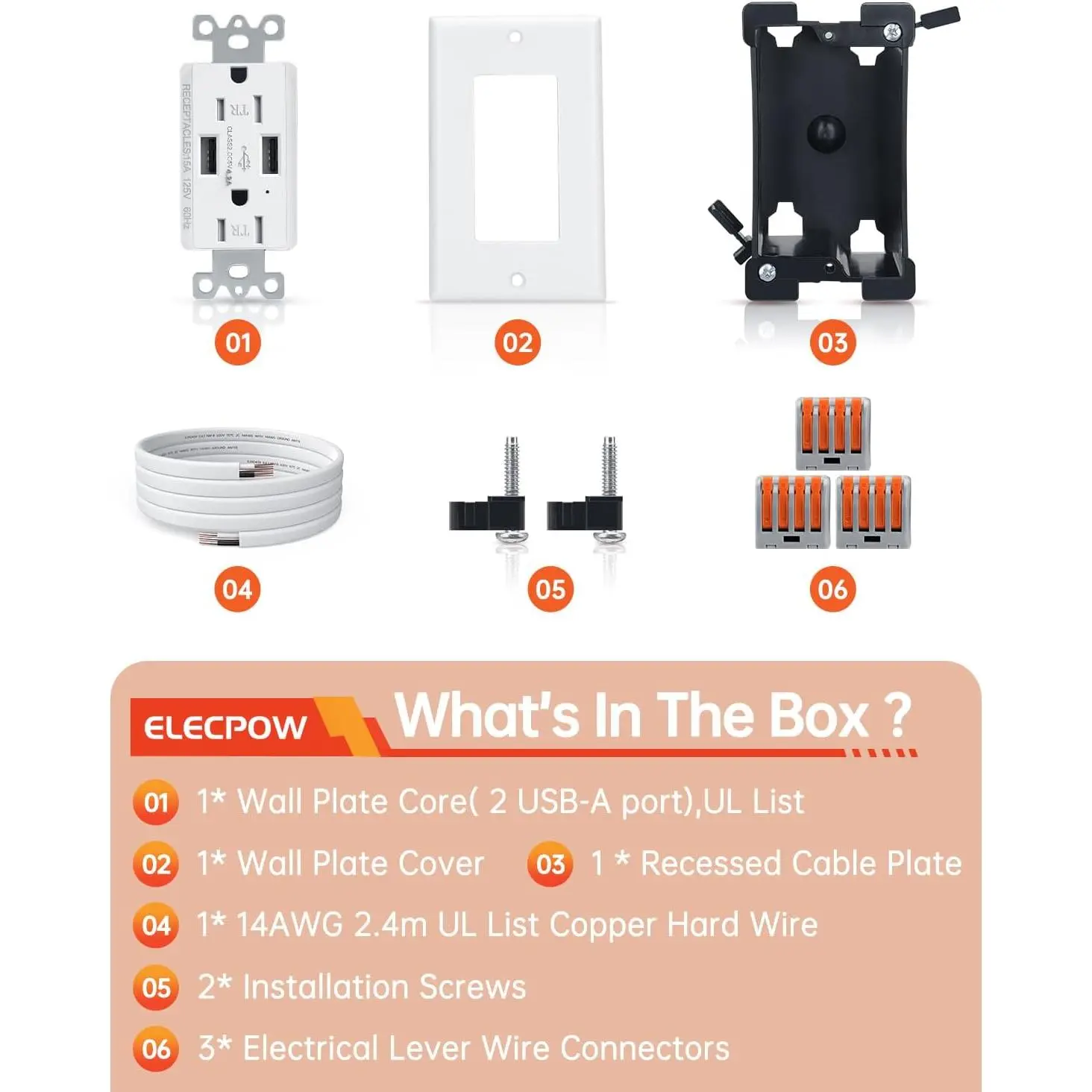 [Provides All You Needs]: The package of outlet relocation kit have Provides :1* Wall Plate Core( 2 AC Socket),UL List