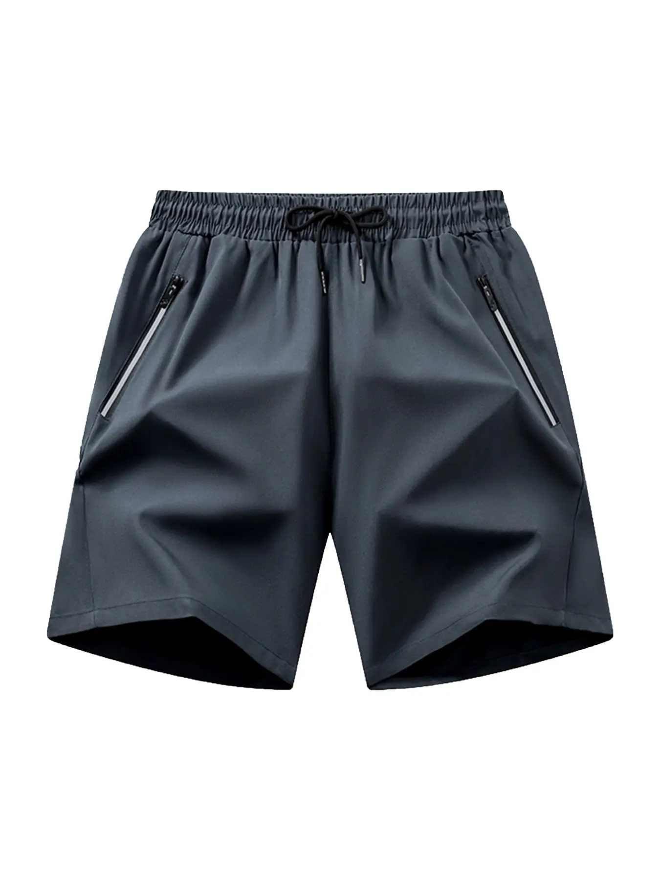 Men's Summer Casual Ice Silk Shorts, Soft Comfortable Fabric, Drawstring Waist, Zipper Pockets, Outdoor Sports Running Fitness