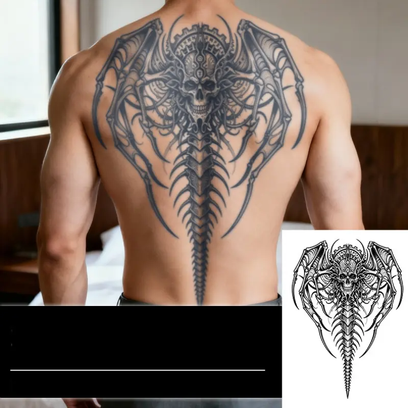 Skeleton demon full back tattoo waterproof temporary tattoo sticker magic tattoo lasting 7-15 days herbal juice semi permanent tattoo large pattern simulation tattoo