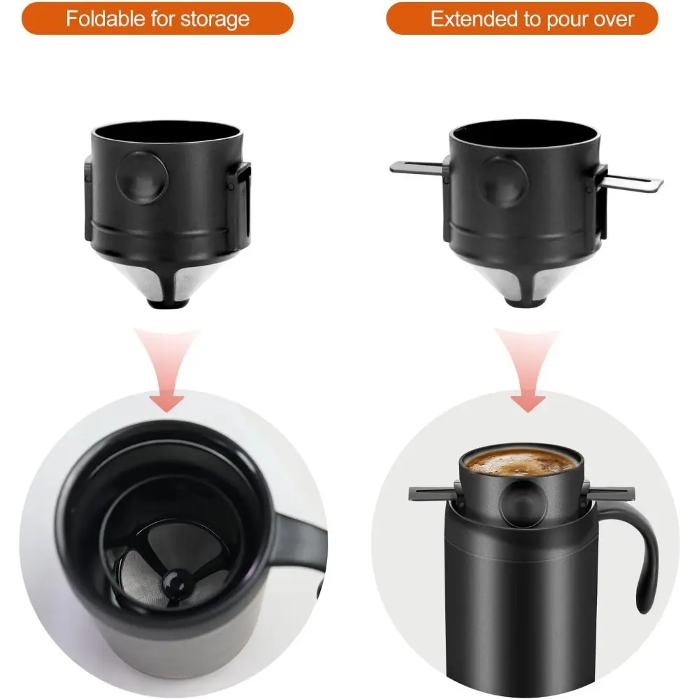 ·Versatile and practical - The camping coffee maker set filter makes coffee silkier with its double layer micro mesh design. Our compact and amazing performance coffee filter allows you to enjoy a precise and delicious cup of coffee without clogging. The travel pour over coffee kit also has a collapsible design that fits perfectly in the mug, and the arms can be extended to filter coffee or folded up for convenient storage