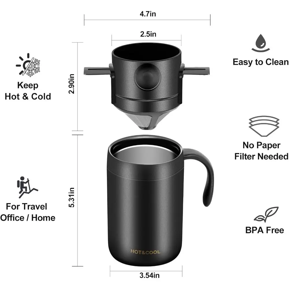 ·Enjoy Hot or Cold Coffee - Our 304 stainless steel double-wall vacuum insulation technology keeps your coffee hot and cold, so you can enjoy your drink from start to finish. Portable pour over coffee maker set have cool-to-the-touch exterior repels sweat and water temperatures, coffee camping kit Perfect for camping, traveling, backpacking, or even at home or in the office