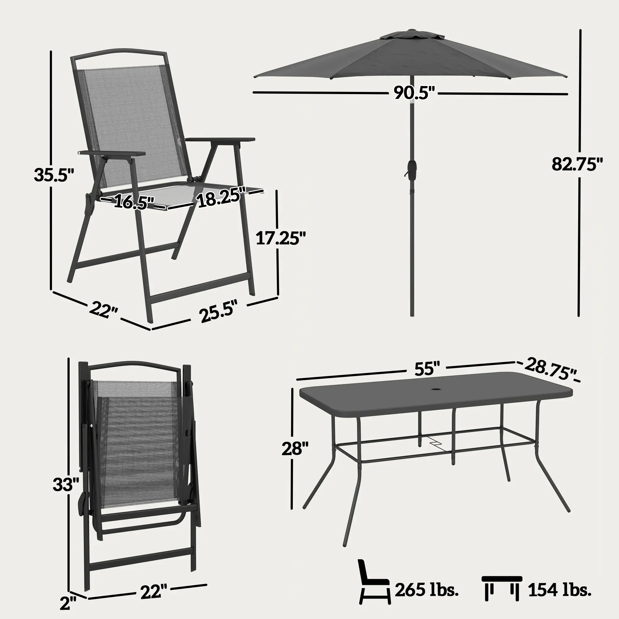 ·Eight-piece set: Six folding chairs, dining table, umbrella.