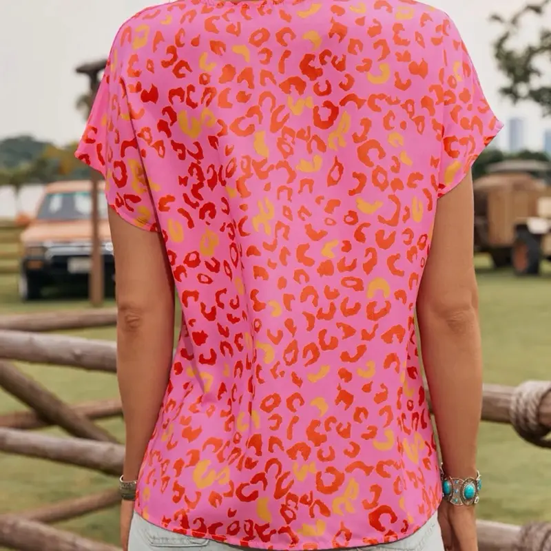 Pink Leopardsd - Vibrant Pink Leopard Print Top for Women, Perfect for Casual Wear and Summer Outfits