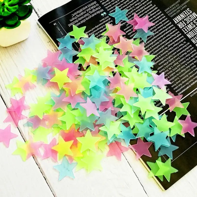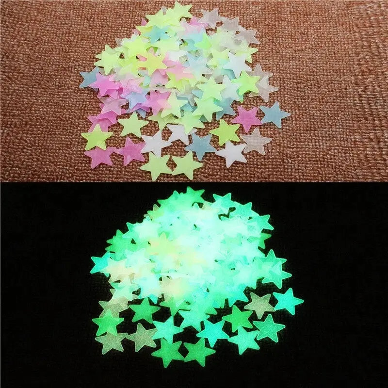 100pcs Colorful Glow-In-The-Dark Stickers, Fluorescent Star Wall Decals, Home Art Decor, Ceiling & Wall Decoration, Bedroom Room Decor