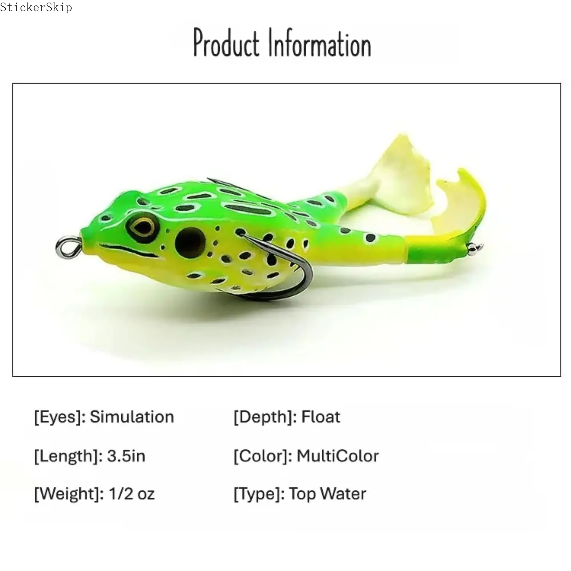 Featuring a multi-jointed body structure that mimics the natural movements of a live frog, paired with highly simulated skin patterns to easily lure predator fish.Standard size 3.5in/13g offers balanced buoyancy for stable floating on the water surface.