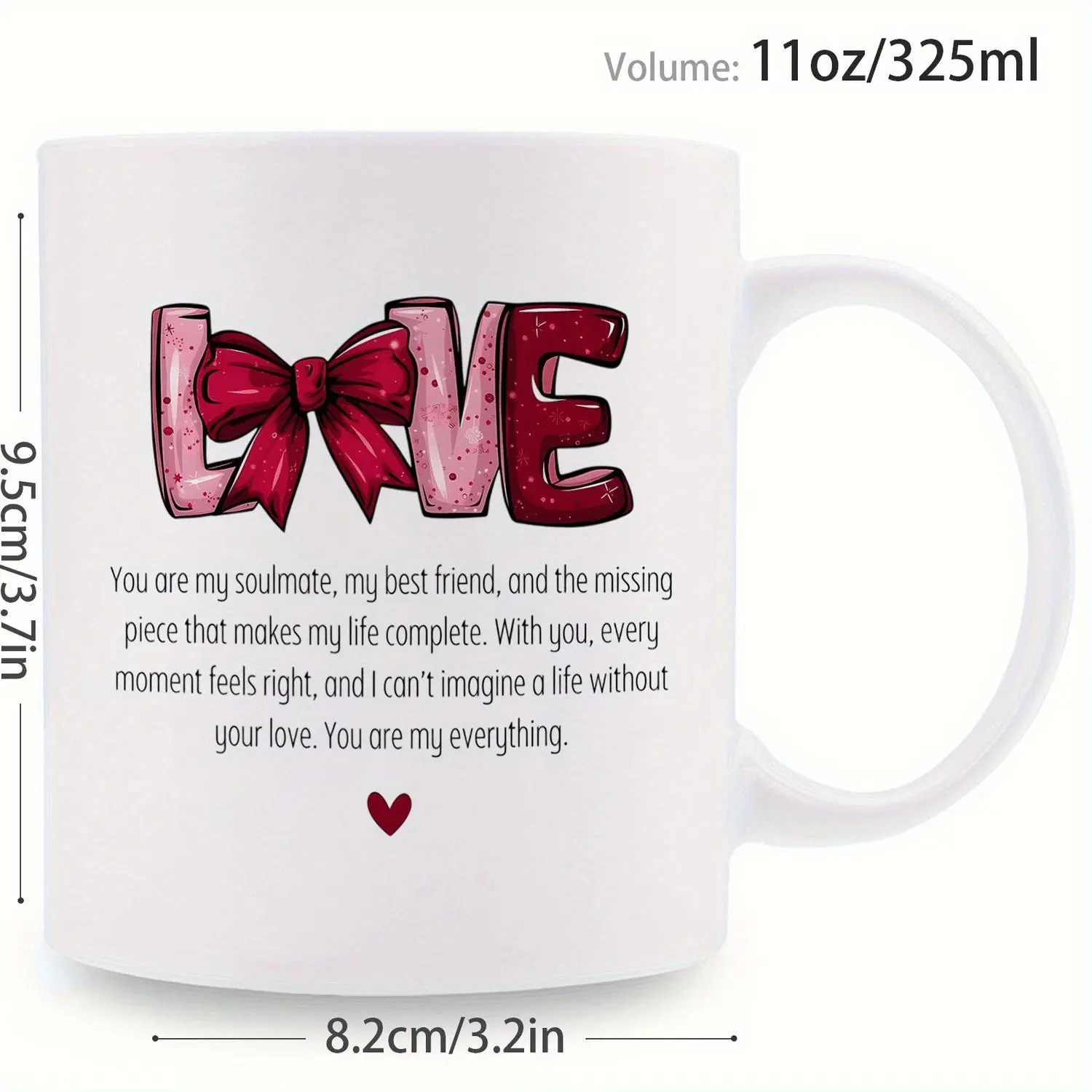 Romantic Heart Mug with Bow and Heart Pattern 11oz Love Cup Perfect for Couples and Special Occasions