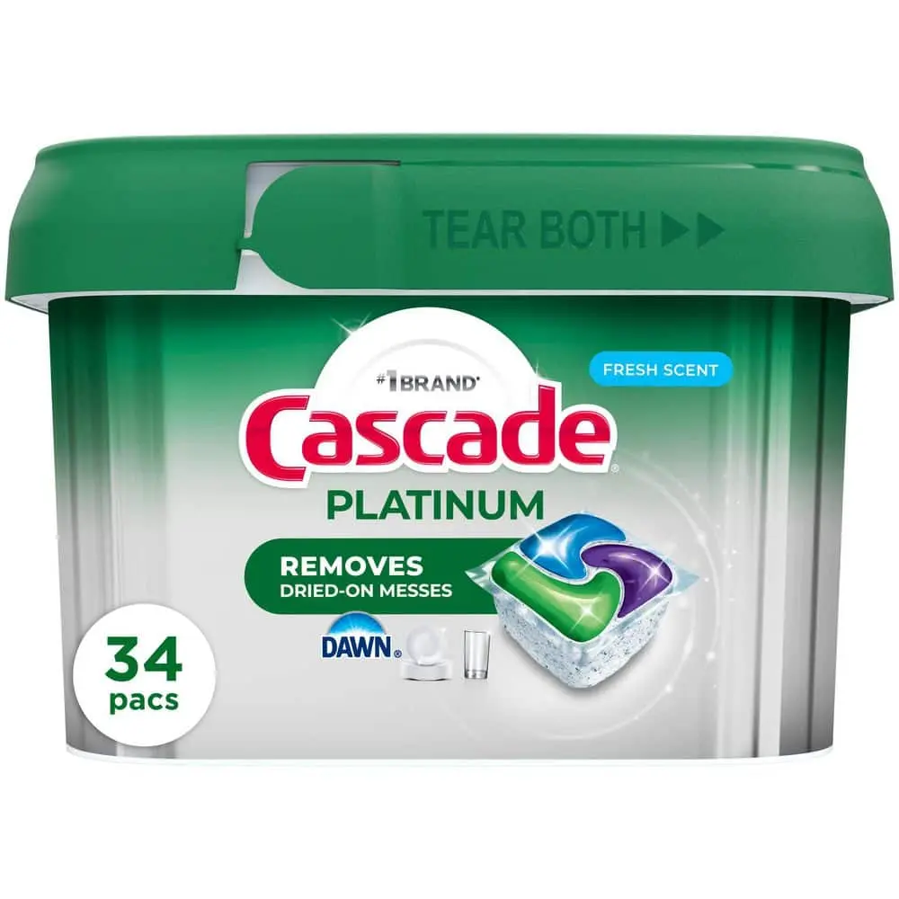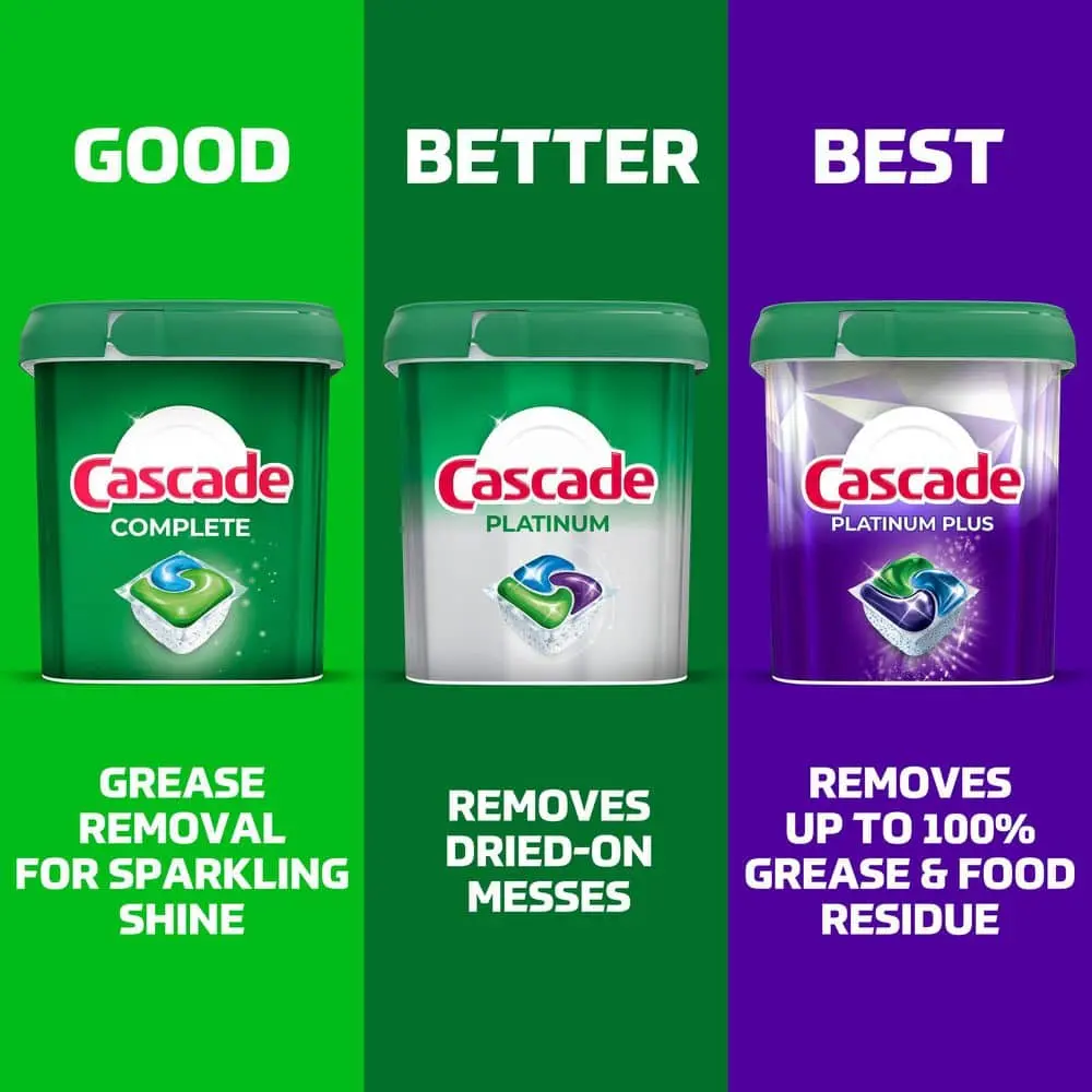 ·Cascade Platinum ActionPacs clean tough messes fast.