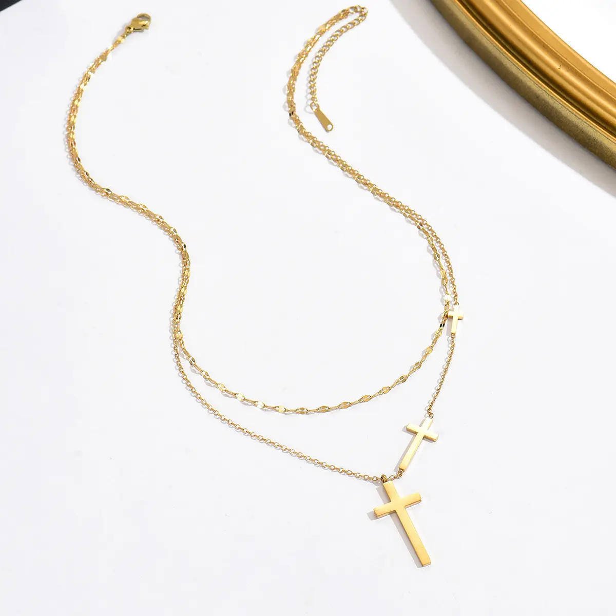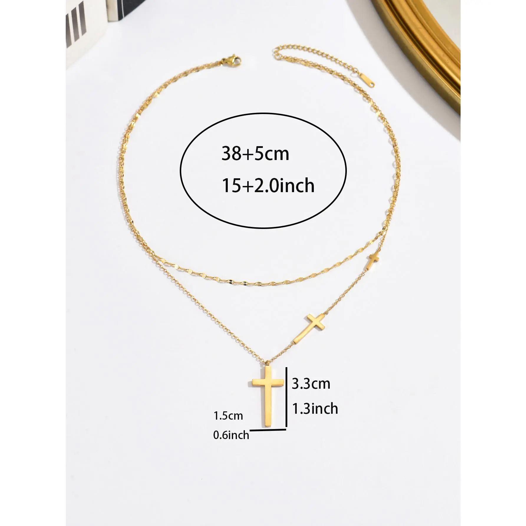 Gold Cross Necklace for Women Dainty Non-Tarnish Layered Necklaces Sideways Cross Pendant Stack Baptism Jewelry