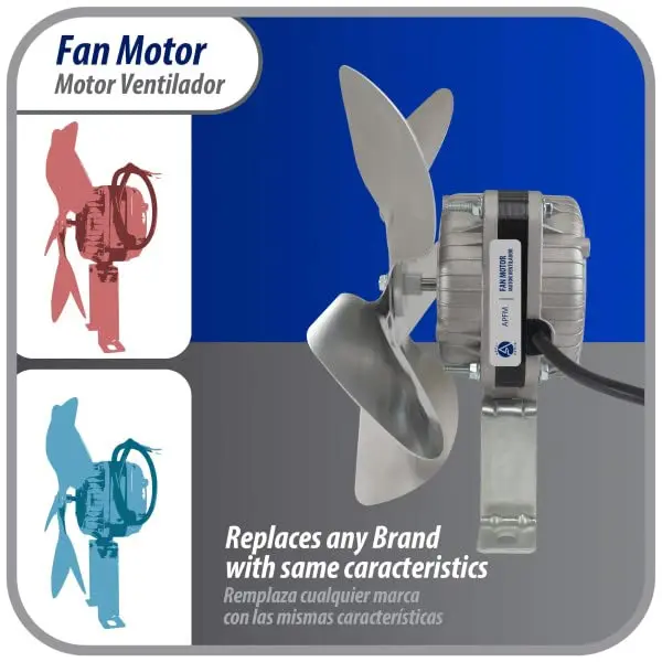 Appli Parts APFM-71E 7W refrigeration condenser and evaporator motor 115V 60Hz 0.55A 1450rpm includes base and 8in aluminum Fan Blade CCW shaft end Universal fit