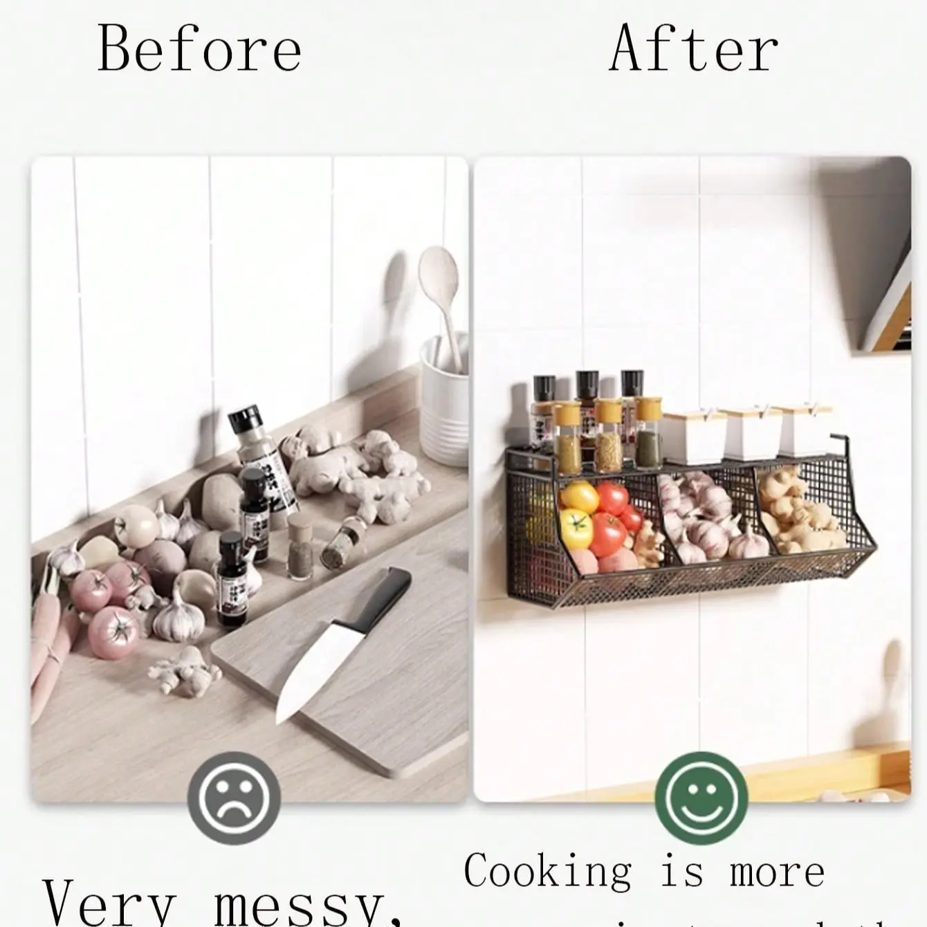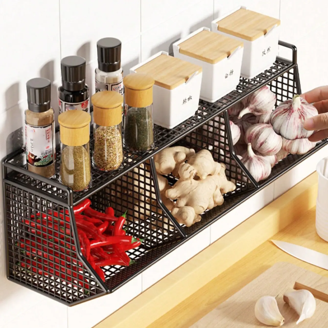 【Multi-Functional】: Organize spices, garlic, onions, and more with separate compartments, keeping your kitchen tidy.
