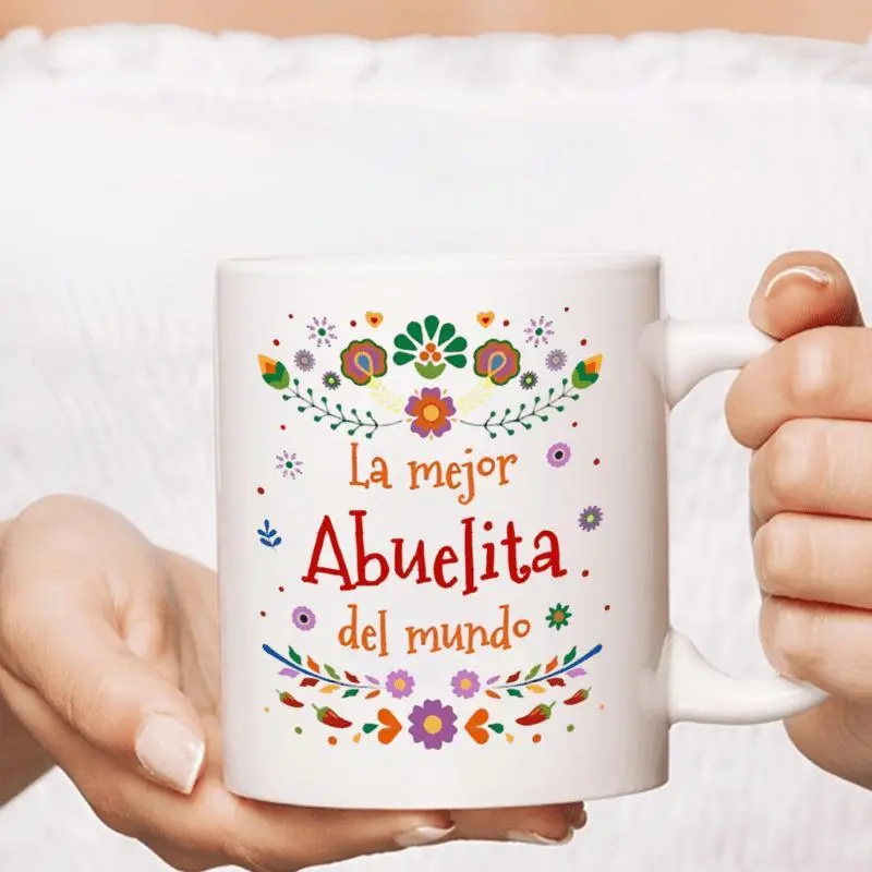 Premium Ceramic Mug Featuring Colorful Floral Design and Quote La Mejor Abuelita Del Mundo Ideal Coffee Tea Gift for Grandmothers Durable and NonSlip