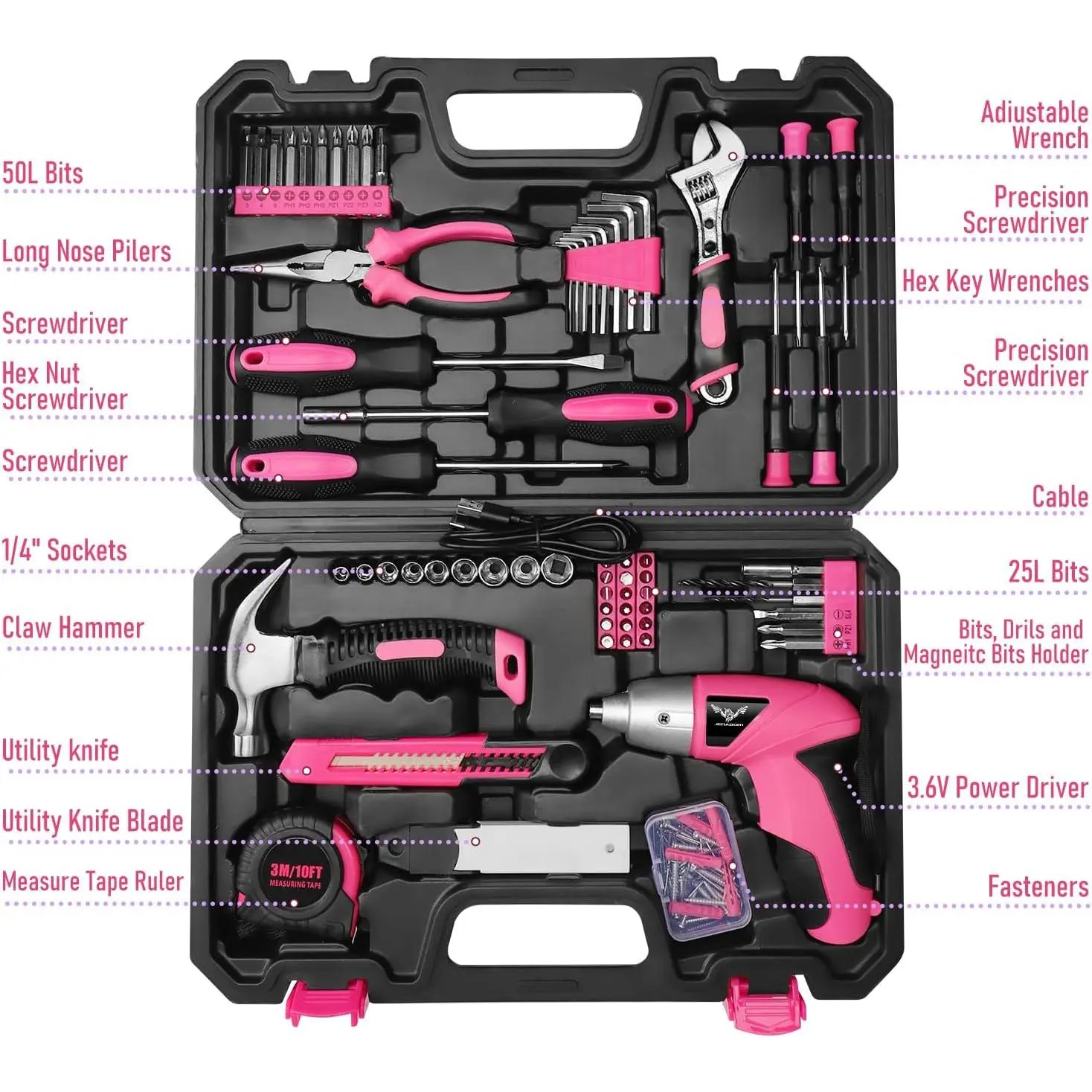 [Multi-functional Tool Kit with Screwdriver]This pink tool set contains the most practical and advanced tools for design, repair or maintenance.It is perfect for decoration, furniture assembly, cutting, gardening, office or daily home maintenance.