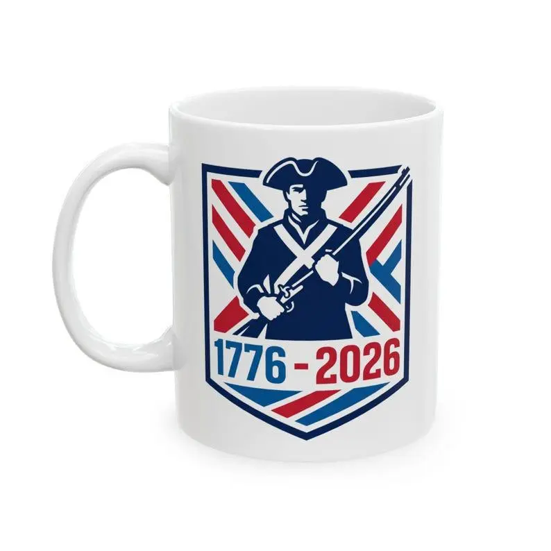 5. Vintage Emblem Ceramic Mug Celebrating Revolutionary War Soldiers from 1776 to 1926