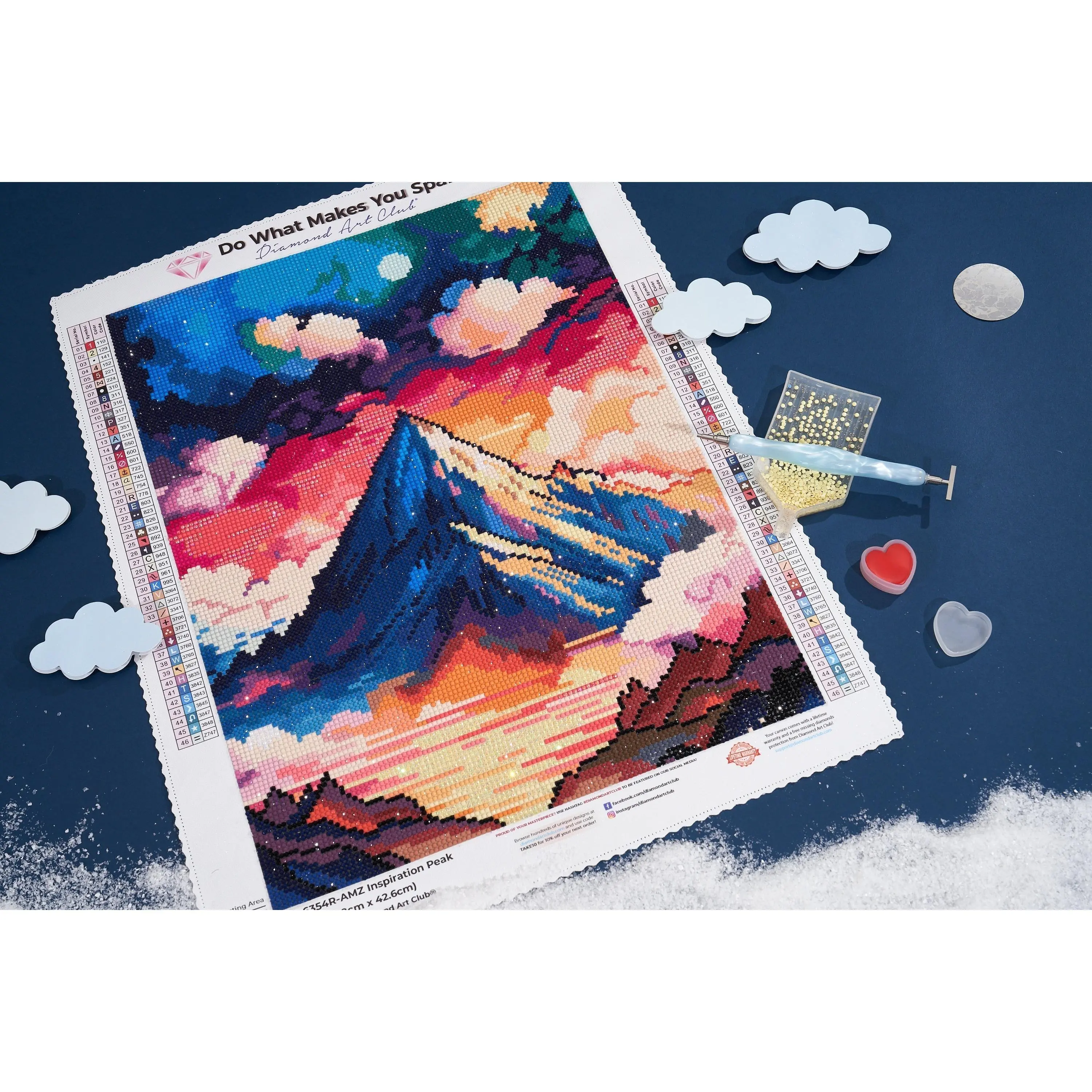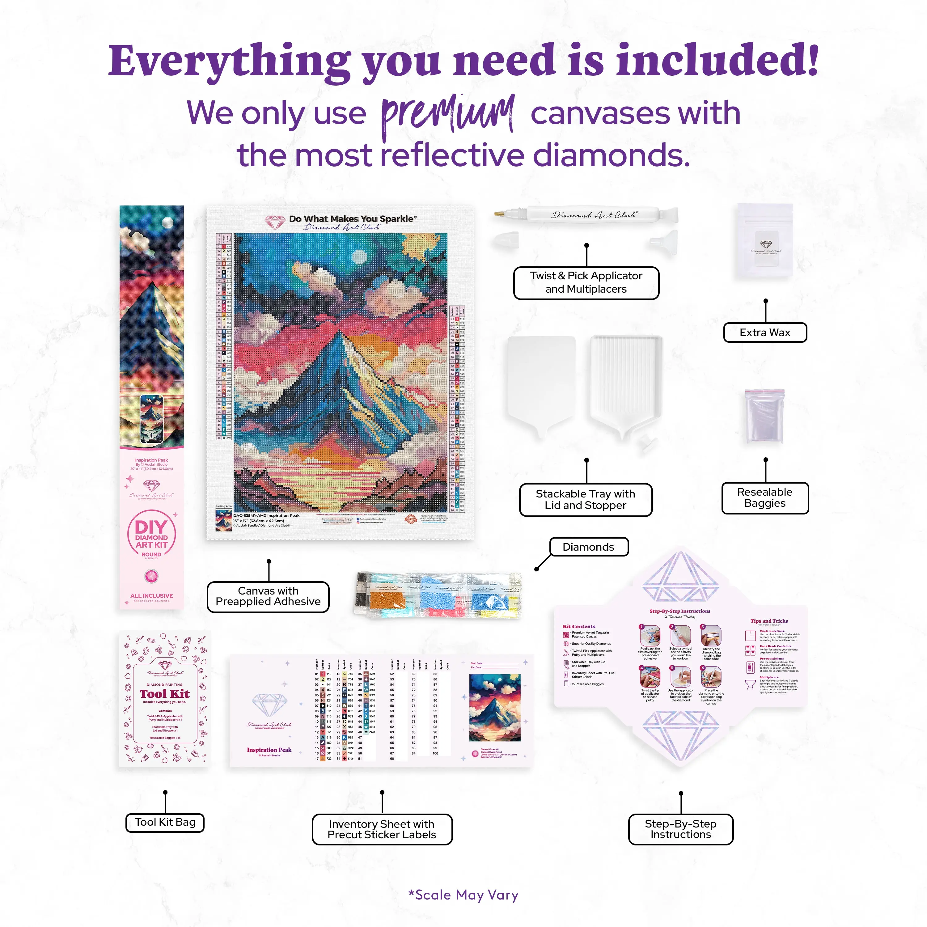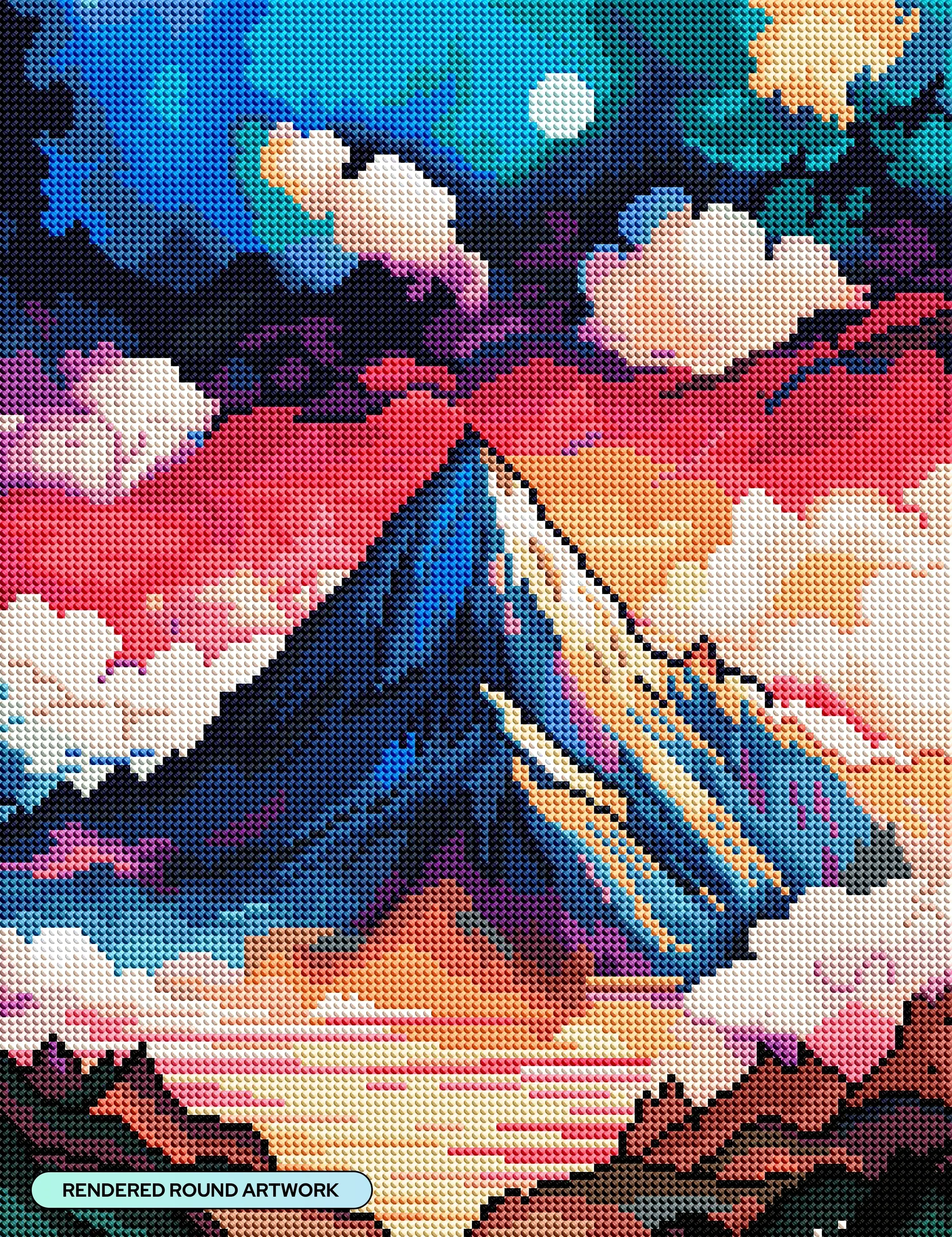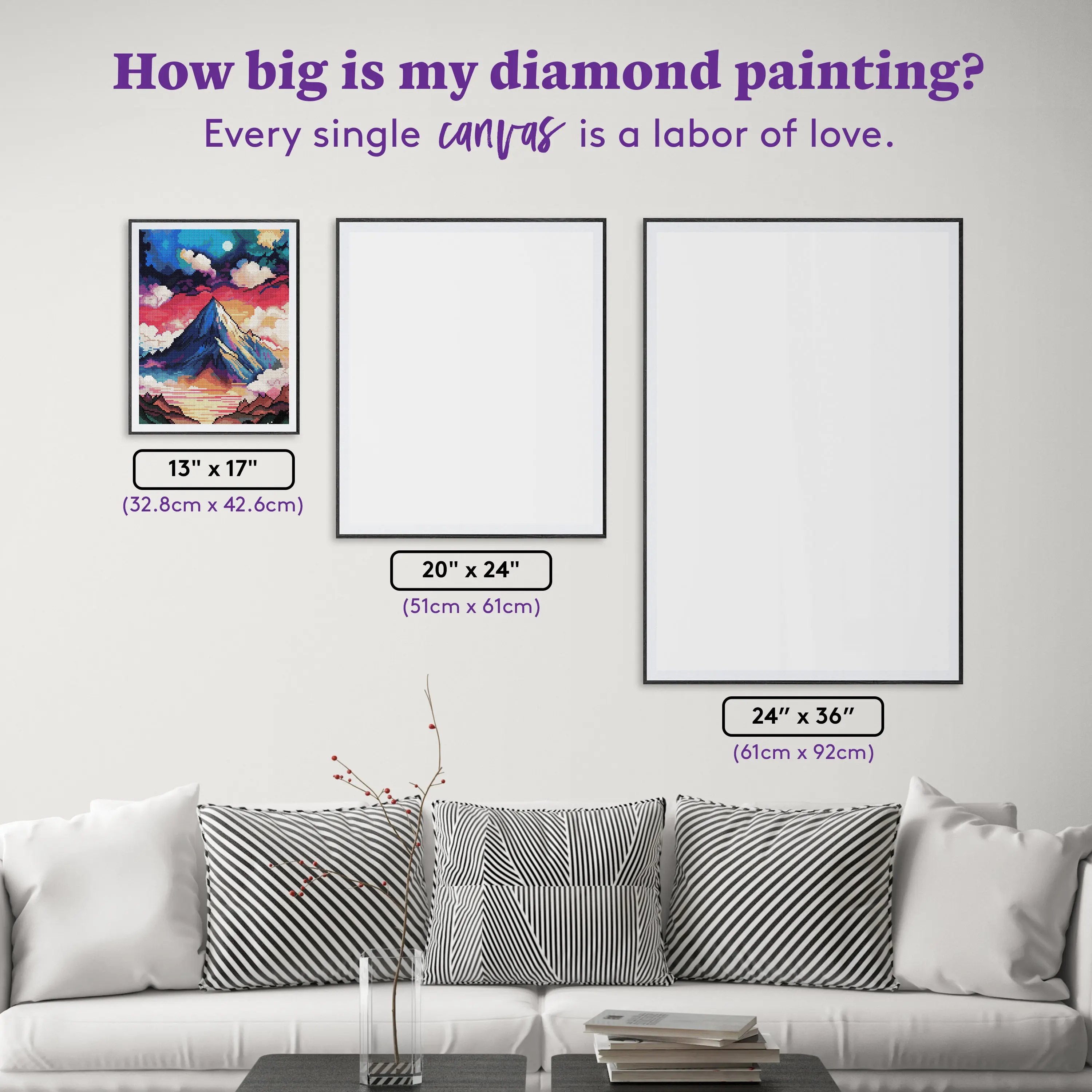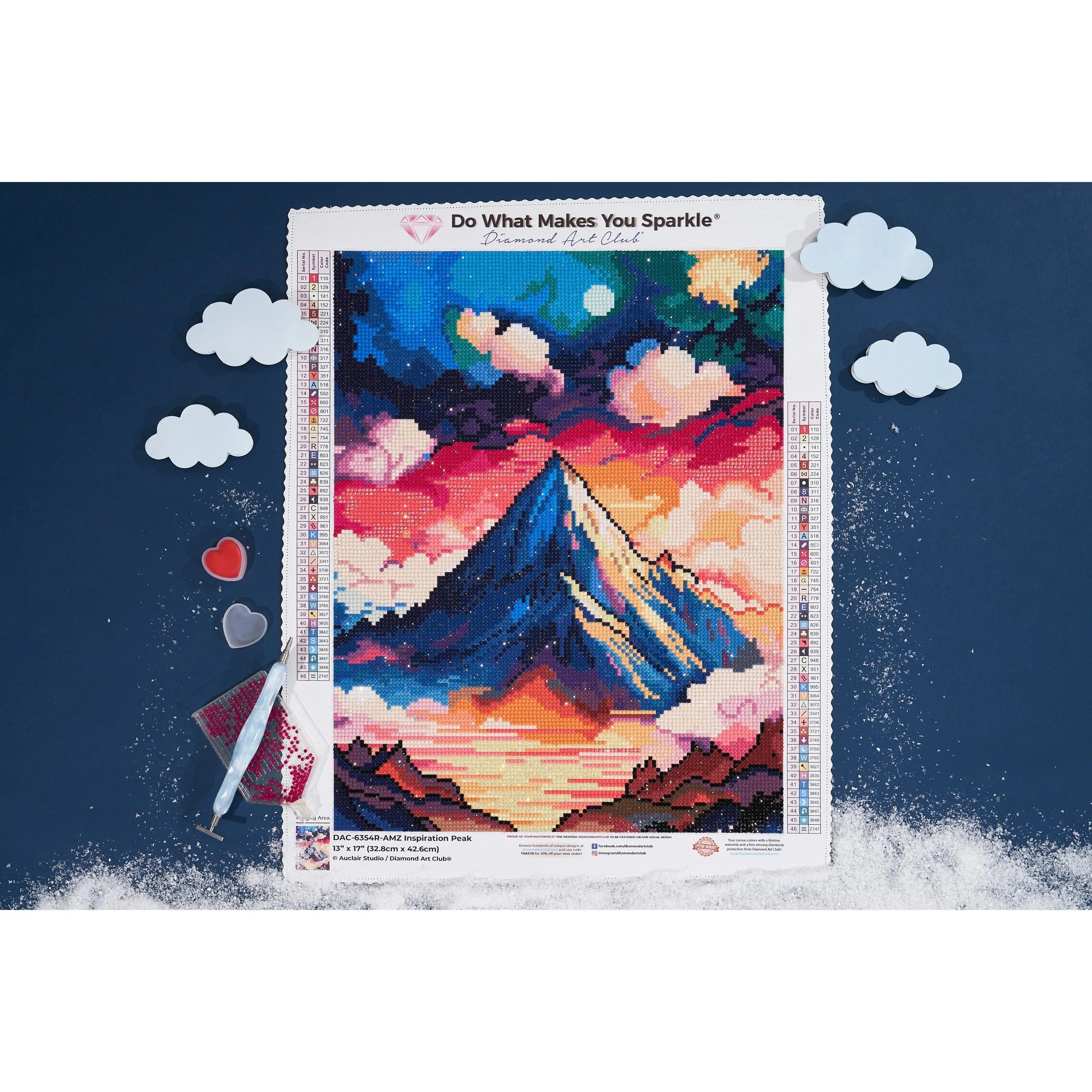 Rise with the moon and dream with the clouds as this twilight peak reaches for the stars. Painted in wonder, its where day ends and magic begins.This artist might have used generative AI to create this design. Please note, Diamond Art Club requires that artwork be significantly hand-edited, as we do not accept pieces created entirely by AI.