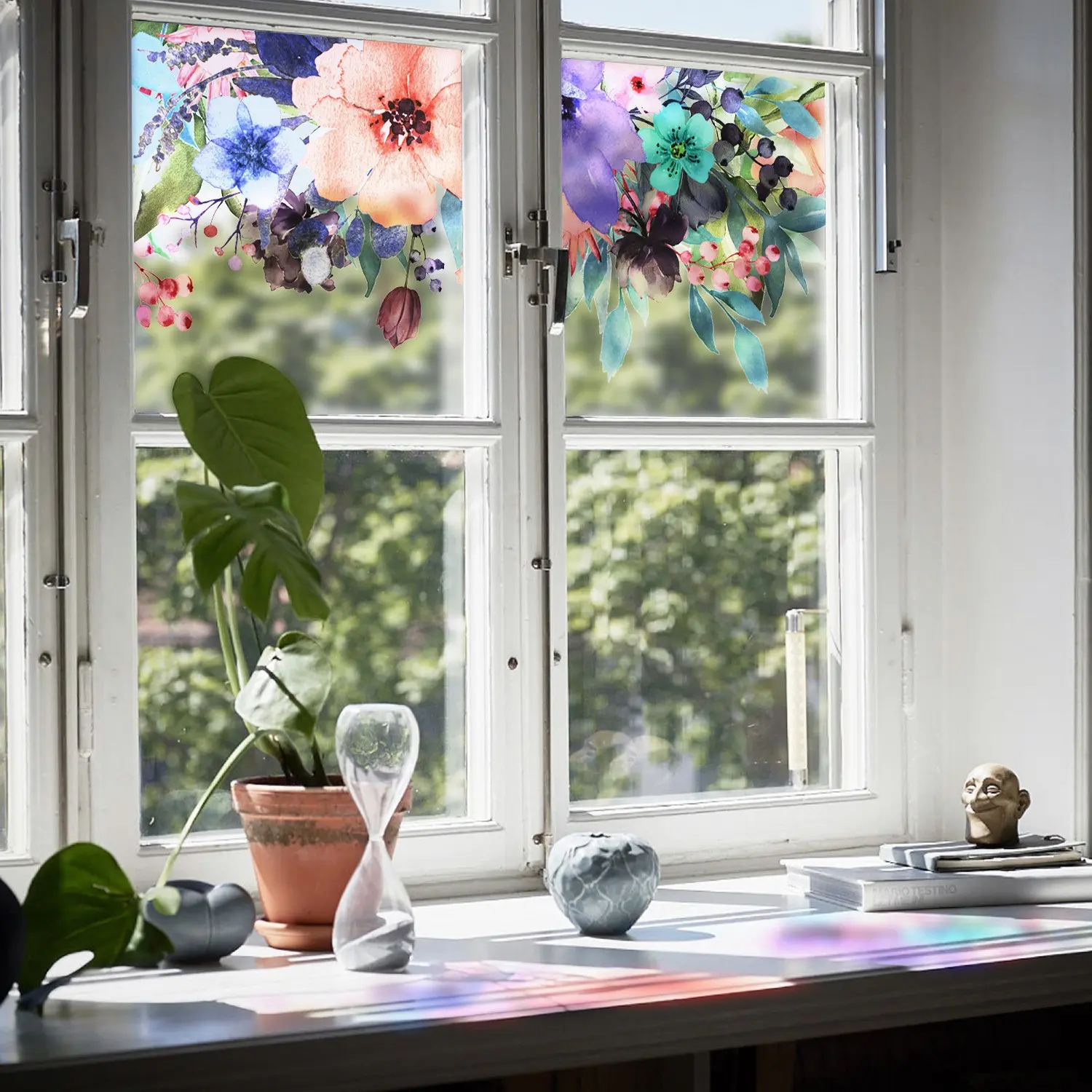 5. Floral Static Glass Sticker Roll, Removable French Style Glass Film, Room Renovation Decor, Balcony Decoration, No Glue Required