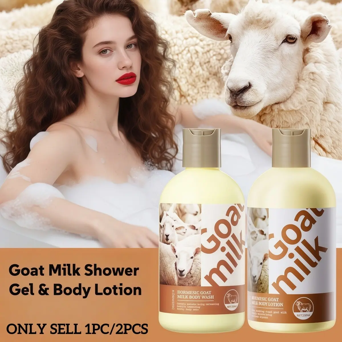 Goat Milk Body Wash & Body Lotion 250ml Set,Moisturizing for Dry Skin,Gentle Cleansing,Long-Lasting Hydration,Soft Smooth Glowing Skin,Daily Skin Care,Nourishing Repair,Non-Greasy,Refresh & Brighten Skin