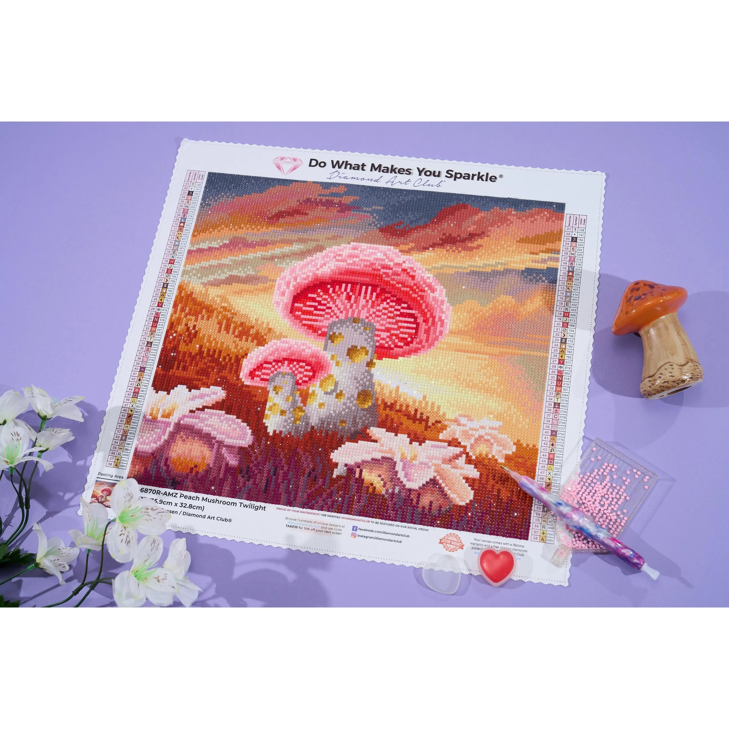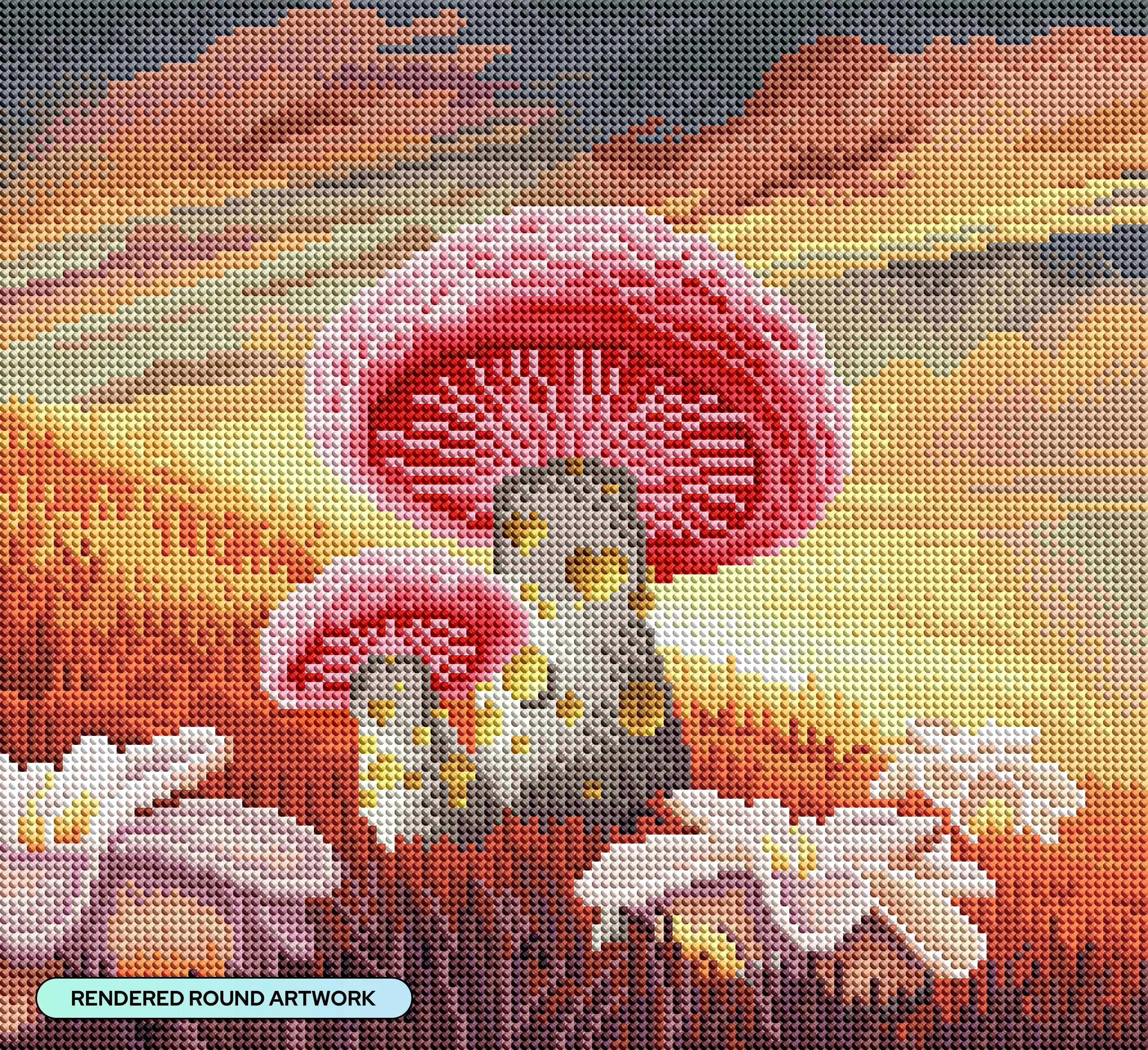 Wander into a twilight meadow where love grows on mushroom stems and the sky blushes with secrets. These heart-speckled toadstools are pure enchantment.