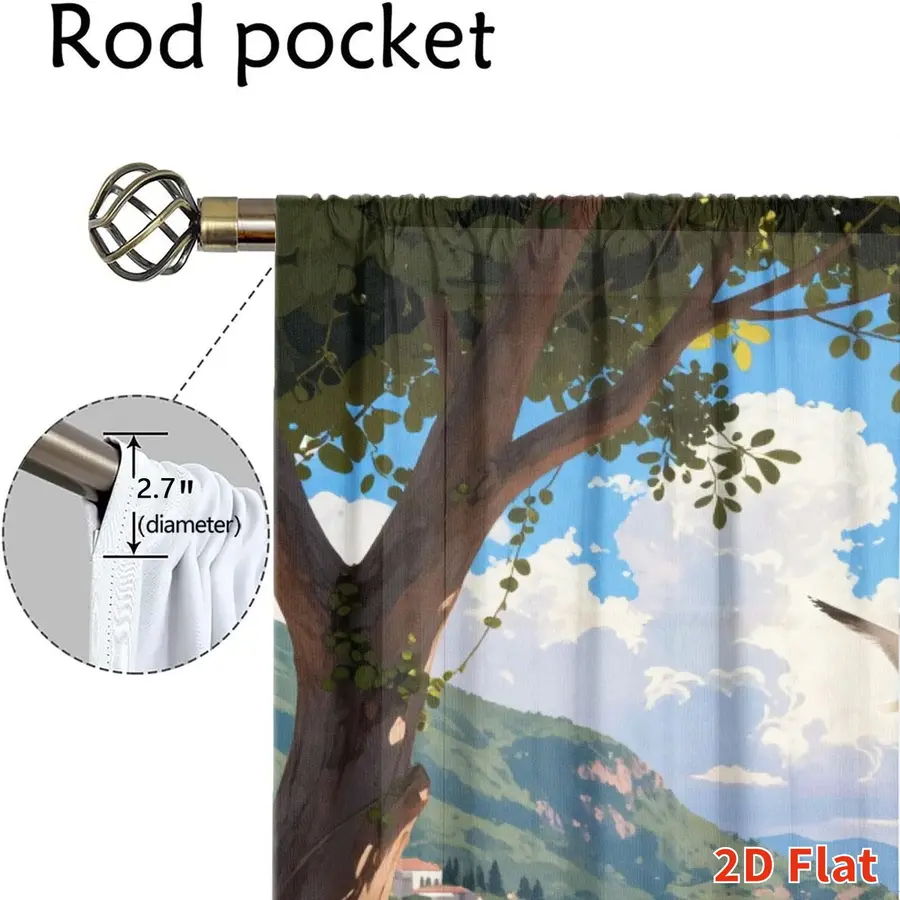 2Pcs Mediterranean Coastal Seascape Seagull Balcony Pattern Sun Blocking Curtains Digital Printed Rod Pocket, Window Treatment For Bedroom Office Kitchen Living Room Study Home Decor