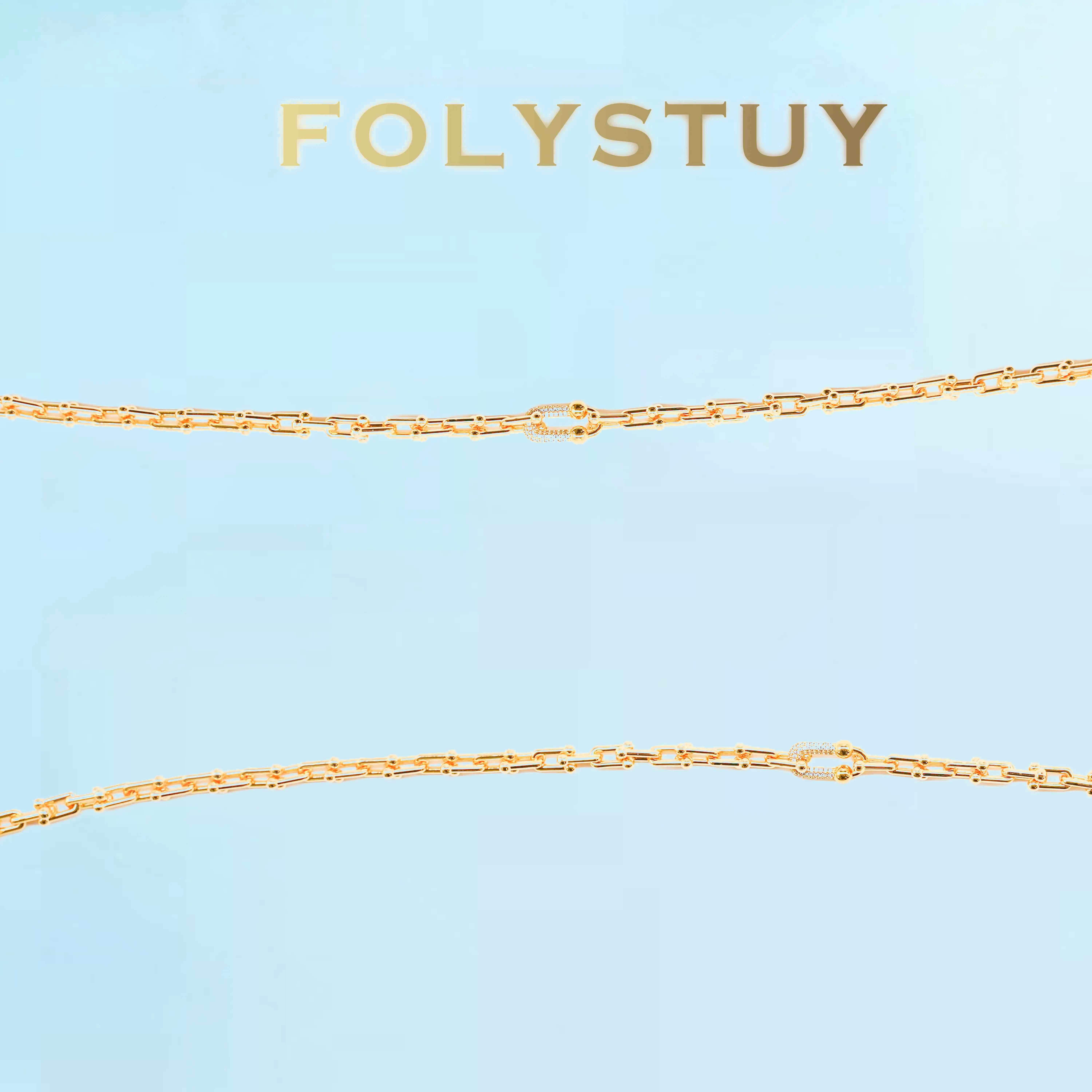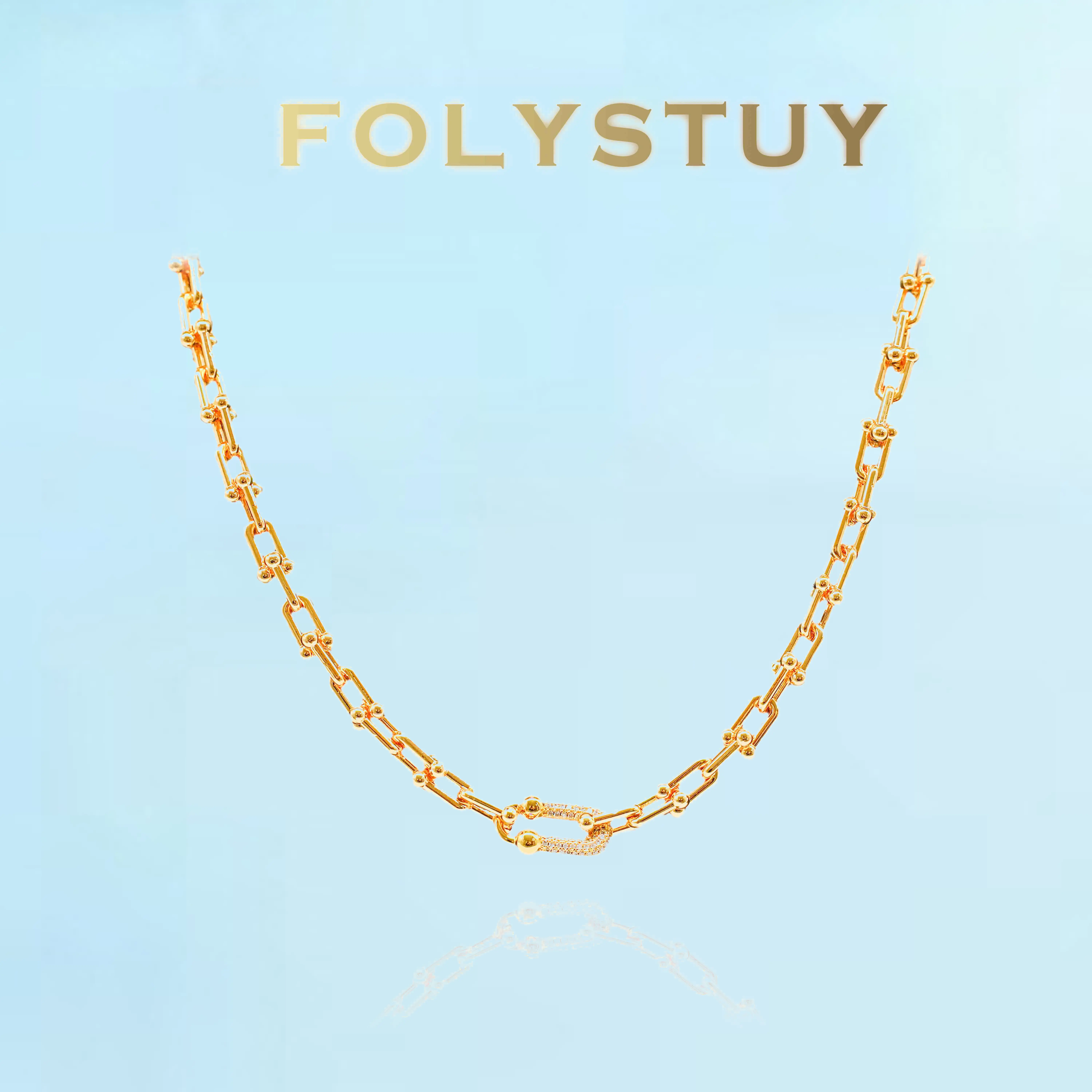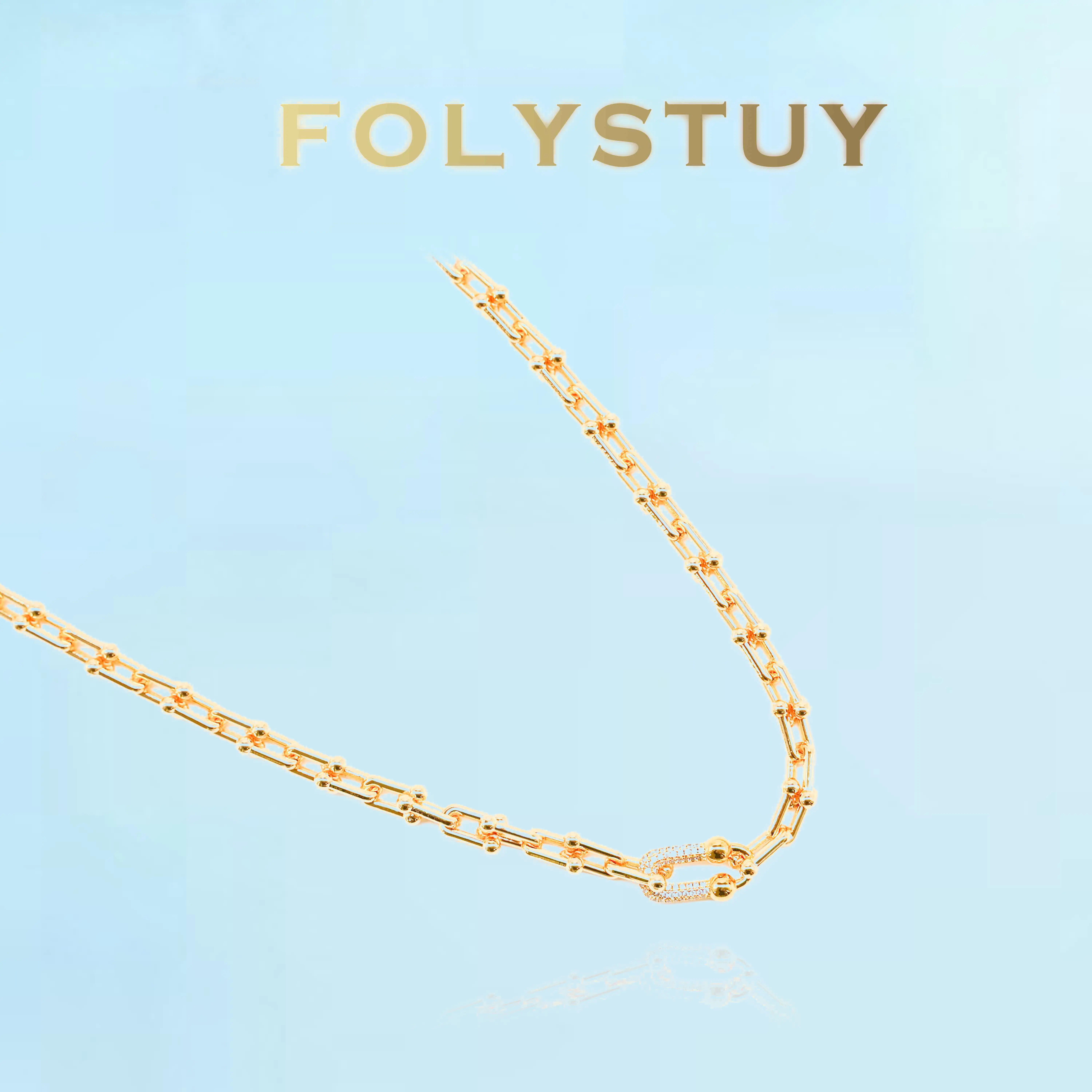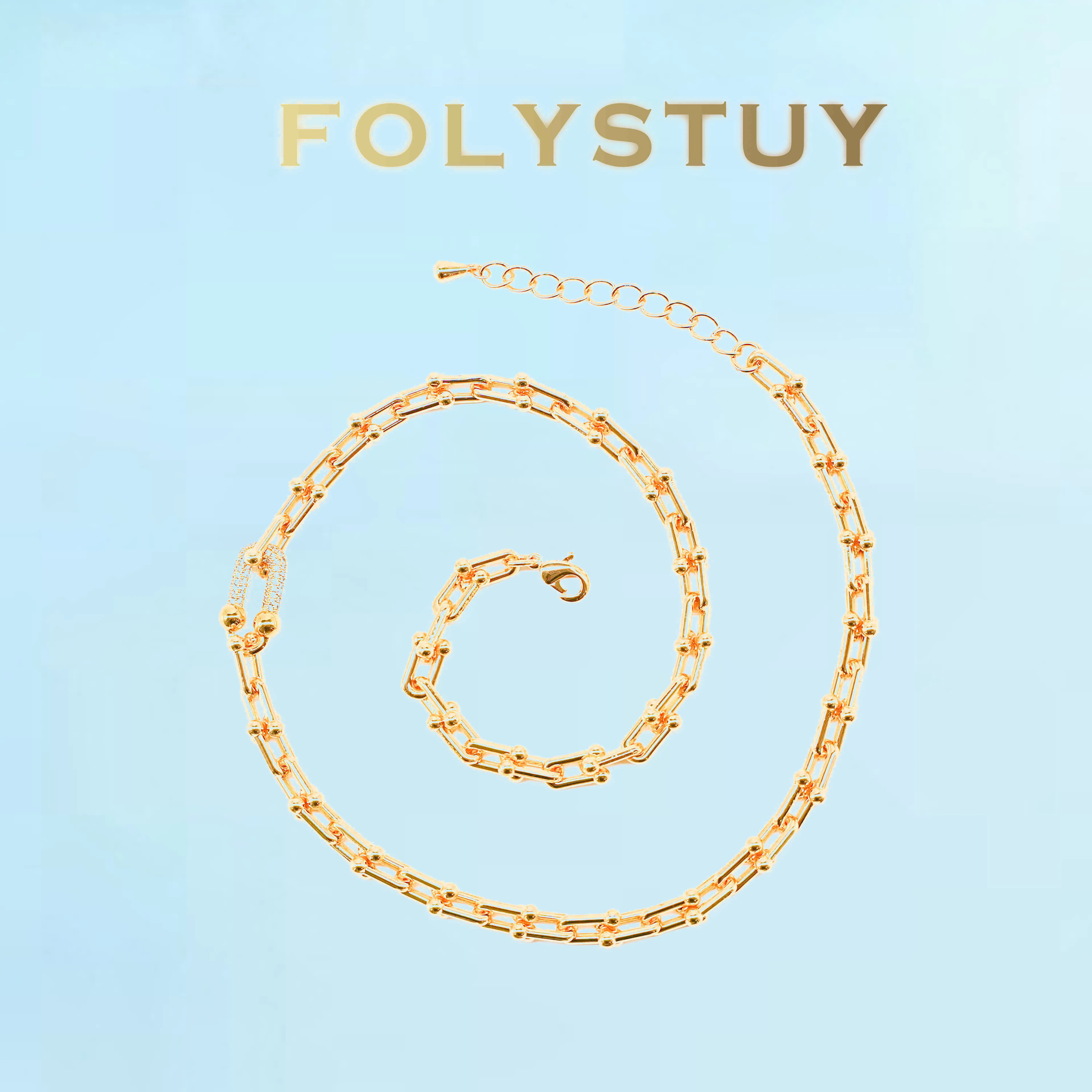 [FOLYSTUY (Y120)]Adjustable U-Link Chain Necklace, 0.31" Width 19.6" Length Everyday Wear Accessory