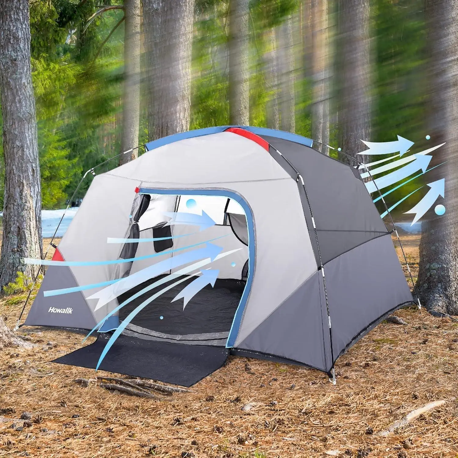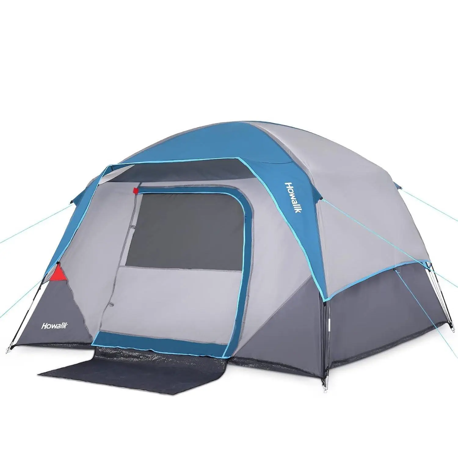 【Stay cool and bug-free with strategic airflow design】 Camping Tent features include dual-layer mesh windows (including a large overhead panel for stargazing), a ground vent, and a full mesh D-door – all protected with fine no-see-um mesh to maximize fresh air while keeping insects out. Two interior storage pockets and a dedicated gear loft for essentials. Plus, an integrated light hook allows easy hanging of your camping lantern for ambient nighttime lighting