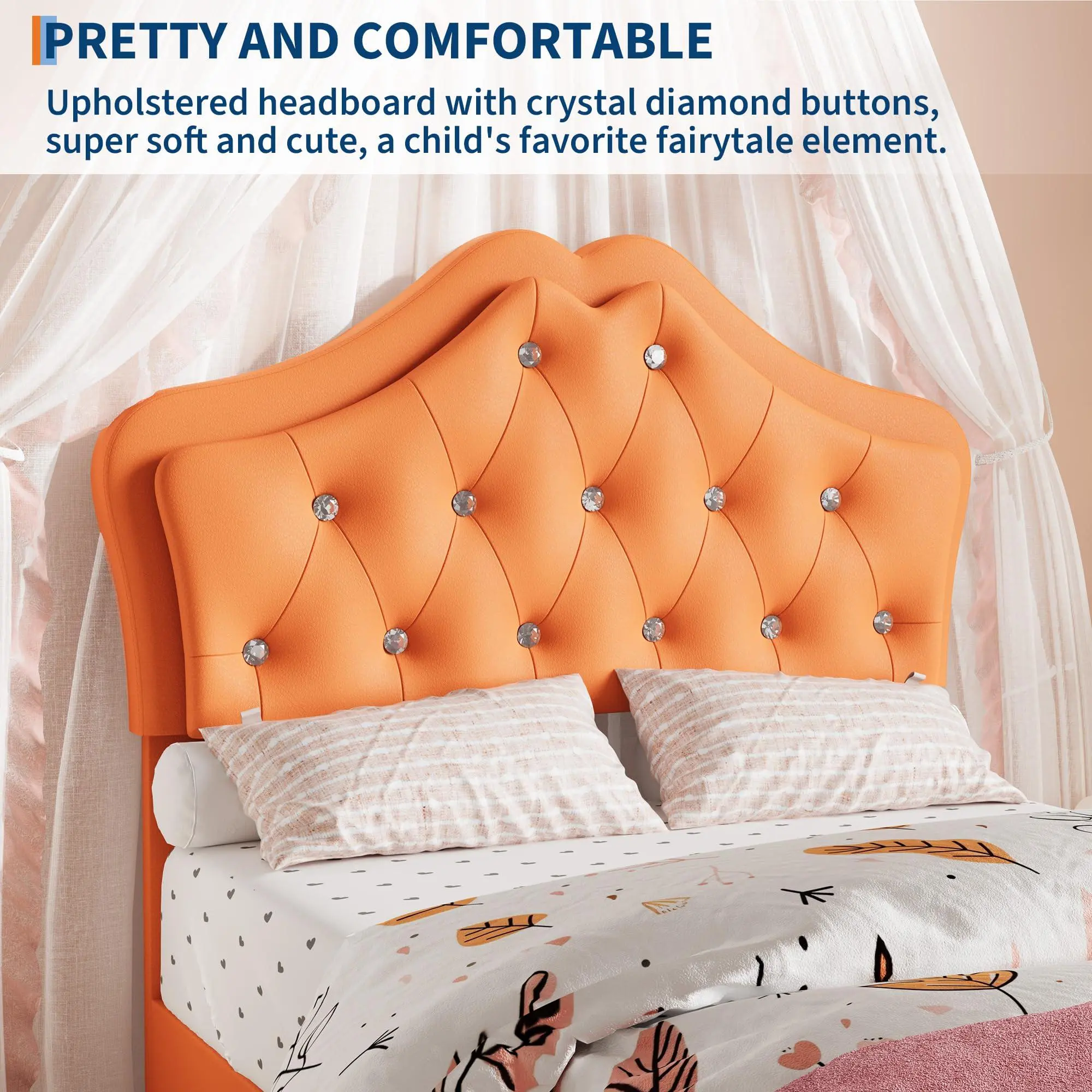 【Enchanting Castle Design】This girls bed features a charming headboard with elegant castle-inspired curves and sophisticated diamond tufting with crystal-like buttons. Upholstered in pink skin-friendly velvet and filled with high-density soft foam, it creates an incredibly cozy sanctuary your child will love. Transform bedtime into a moment they look forward to with this dreamy twin bed gift.
