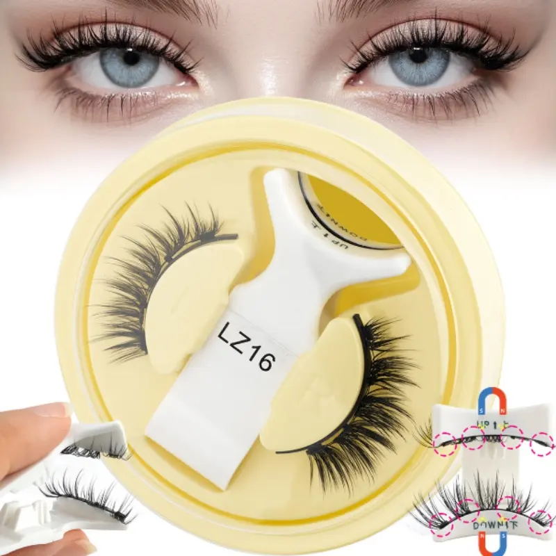 Magnetic Cat Eye False Eyelashes Reusable Waterproof Natural Thick No Glue Needed, Cross Design, Easy Application, Perfect for Daily Wear
