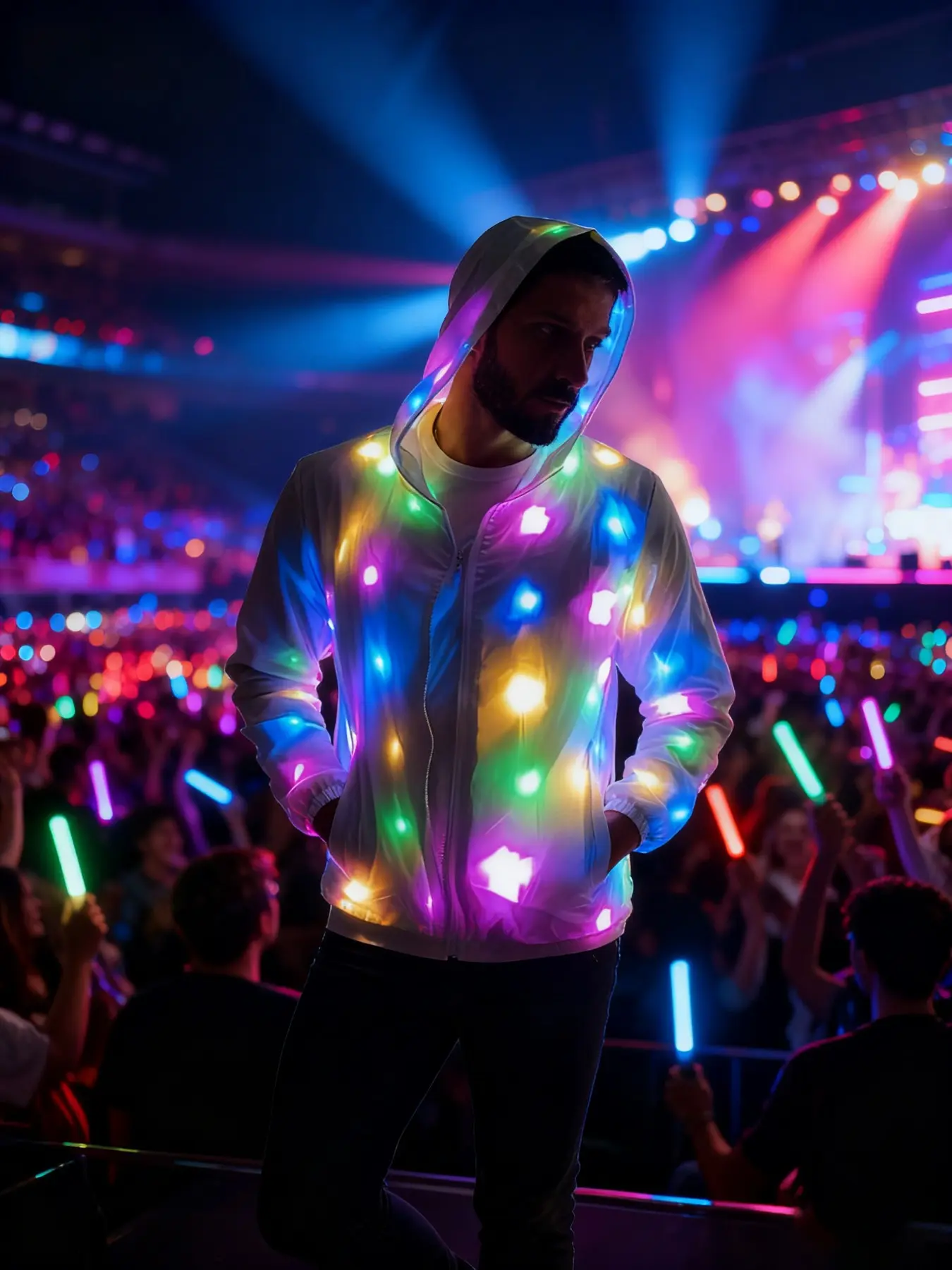 Men's LED Glow Hooded Sun Protection Jacket, Fashionable Reflective Design, Soft Comfort, All-Season Party Outerwear, Music Festival Style