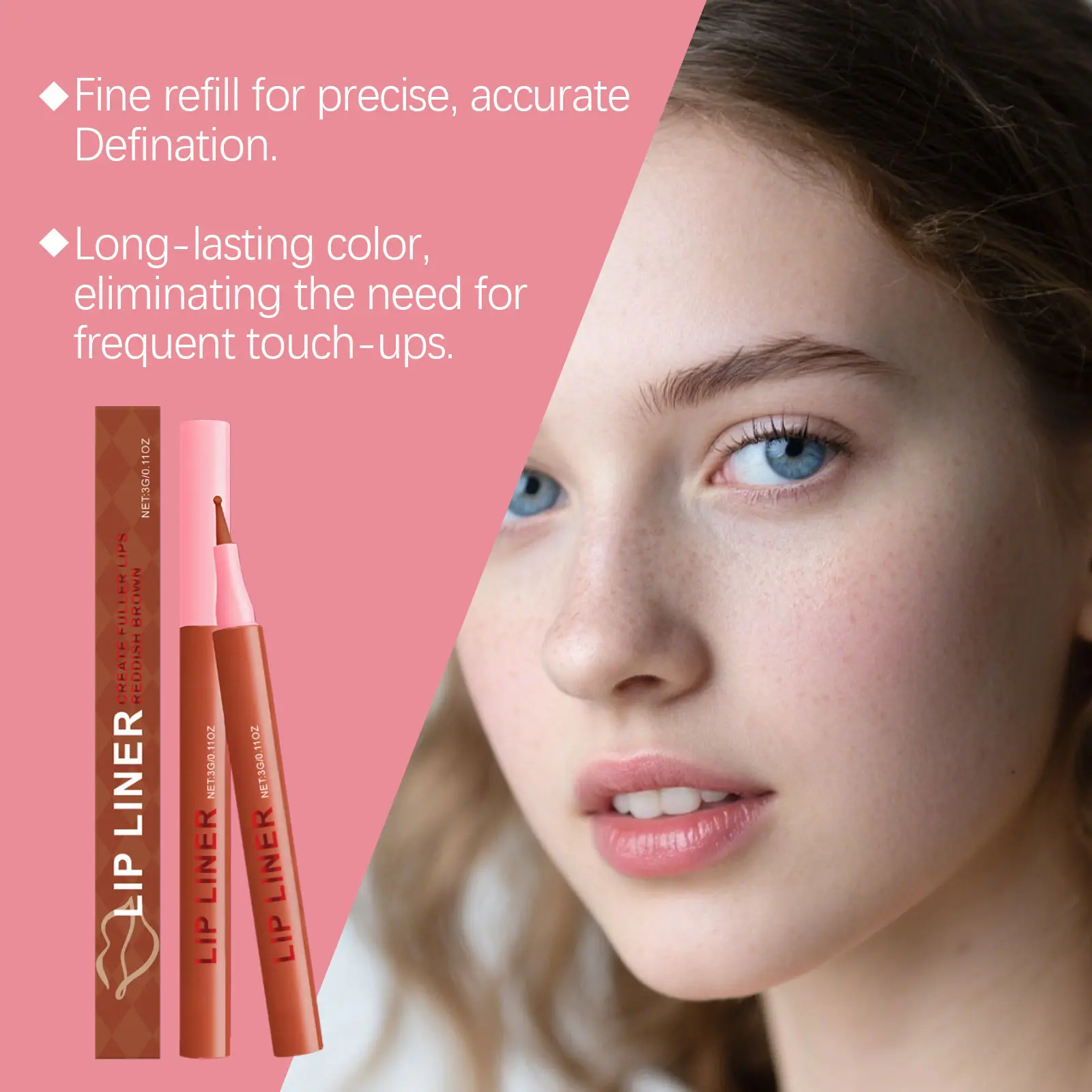 The Reddish-Brown Lip Liner Can Outline The Lip Shape And Show The Lip Color.It Is Waterproof And Not Easy To Fade Or Peel Off.It Can Be Used Daily As A Lip Liner