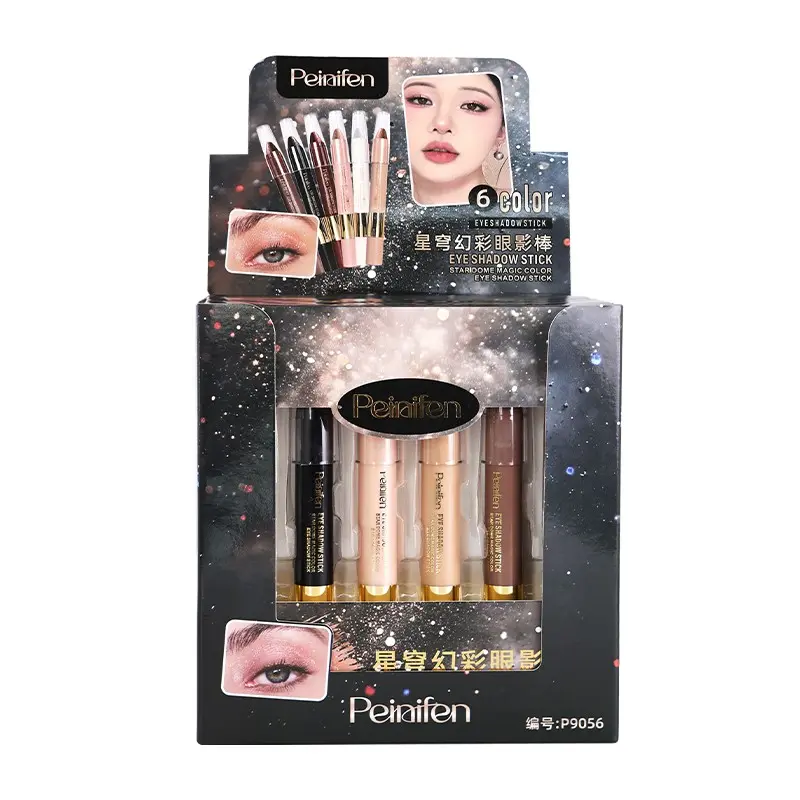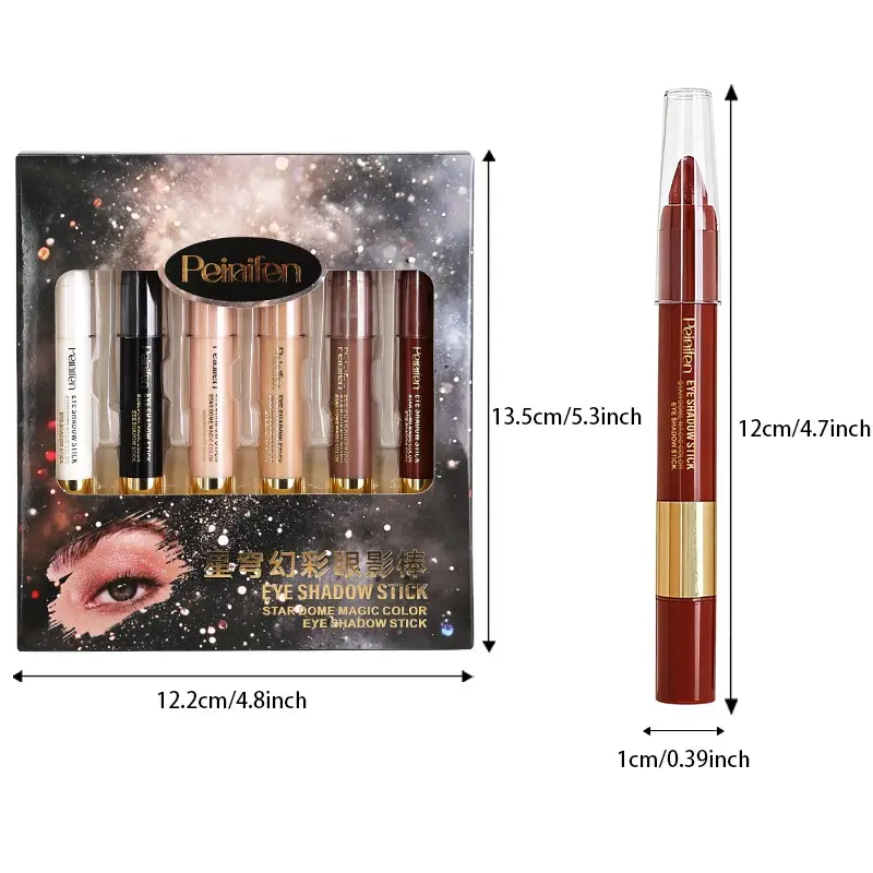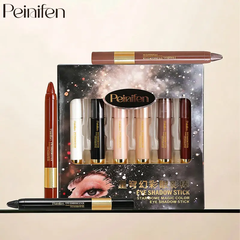 6-Color Starry Eyeshadow Stick, Fine Shimmer Gel Glitter Highlighter, Long-Lasting Natural Brightening, Lazy Eye Shadow Brush