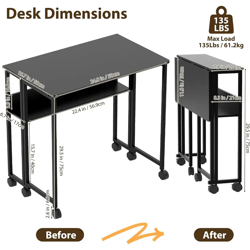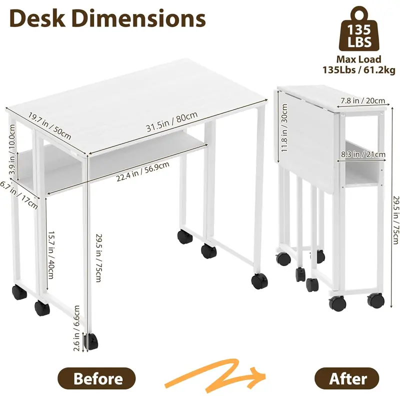 ·2-in-1 Desktop & Storage Shelf Combo:Work smarter with a built-in bottom shelf that holds books, printers, baskets, or office supplies. Even when folded, this unit doubles as a sleek side table for drinks, snacks, or a lamp. You don't just get a desk—you get a storage solution that works in any room.