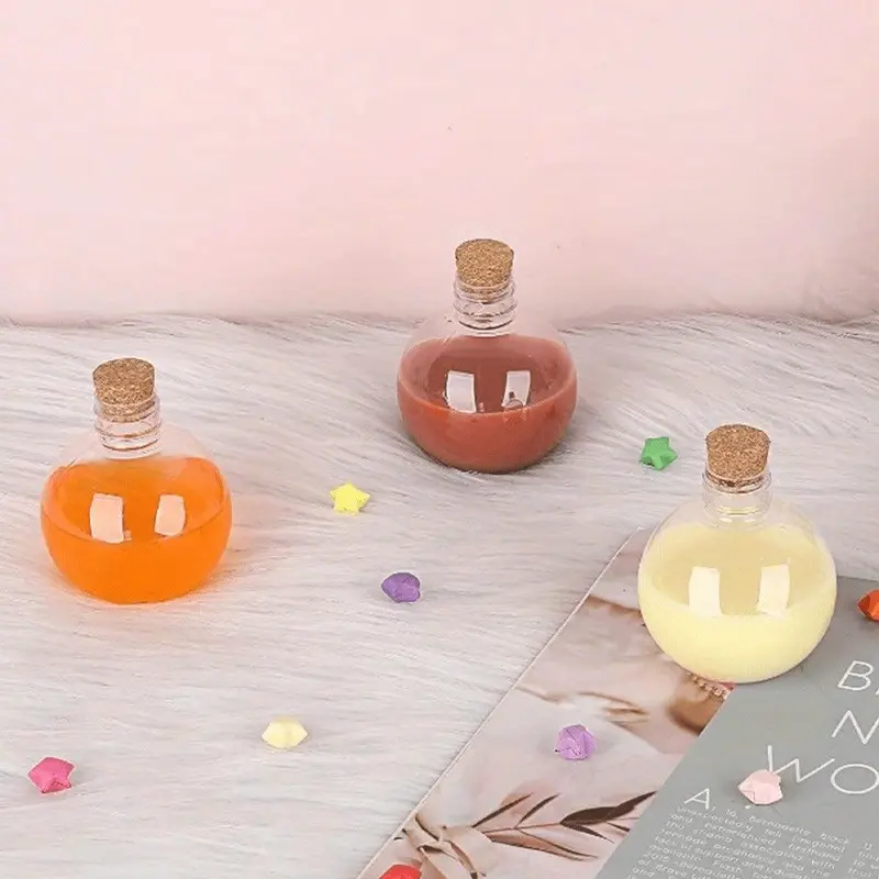 Transparent Plastic Ball-Shaped Potion Bottle with Cork, Sand Art Container, Party Drink Bottle, DIY Craft Bottle, Essential Oil Bottle