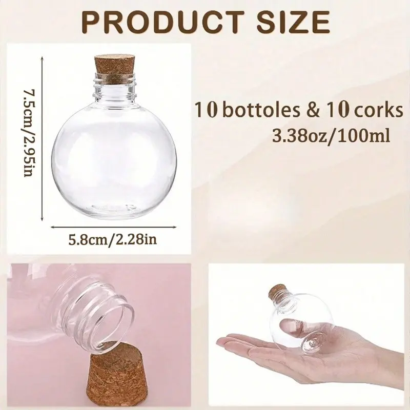 5. Transparent Plastic Ball-Shaped Potion Bottle with Cork, Sand Art Container, Party Drink Bottle, DIY Craft Bottle, Essential Oil Bottle