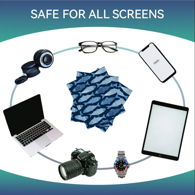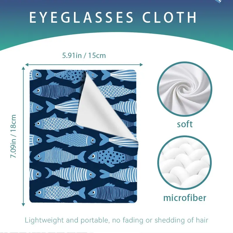 1/3/6/14pcs Blue Fish Pattern Cleaning Cloth, Multi - Specs Single - Side, For Camera/Glasses Lenses, Home & Photography Use, Soft Microfiber Material, Efficient Cleaning, Decorative Design